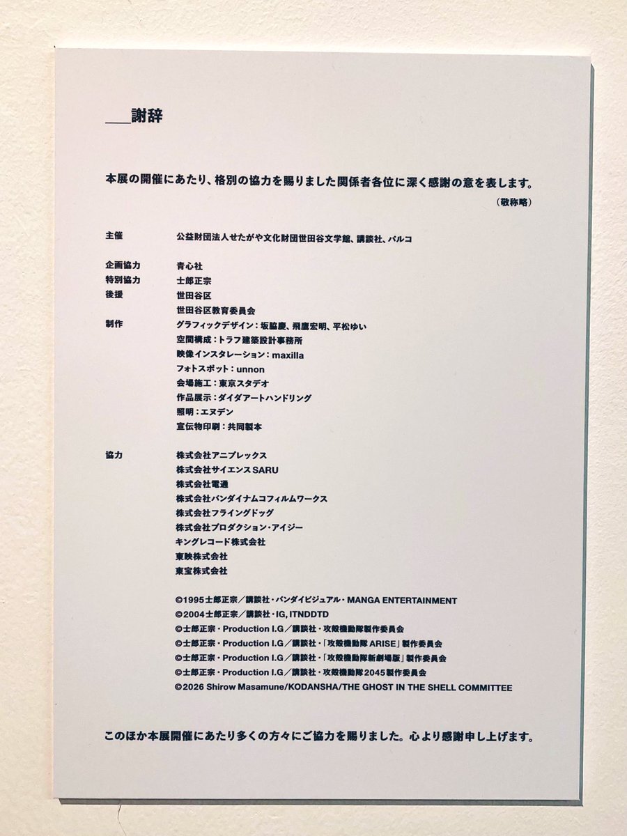 【士郎正宗の世界展】 4月から10月頭まで約6ヶ月、準備期間を含めると1年以上もの期間を費やし素晴らしい展示会を開催いただき感謝。世田谷文学館様、講談社様、パルコ様、ありがとうございます これだけ多くのシロマサ原稿やグッズが揃う事は今後なかなか無いでしょう… #士郎正宗の世界展 pic.x.com/faNUrpmI1i