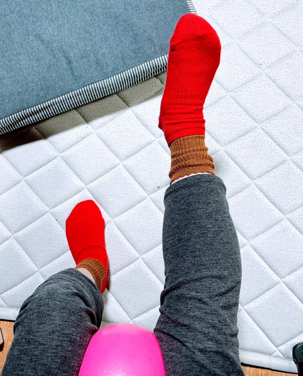 椅子に座って ボールぎゅっと挟んで 足あげてます 今日は まだ上がってる方 重ねばきの靴下の色 目が眩むな🤣 #変形性股関節症 #人工股関節置換手術 に向けて #筋肉貯金 pic.x.com/XEzqLmQmxt