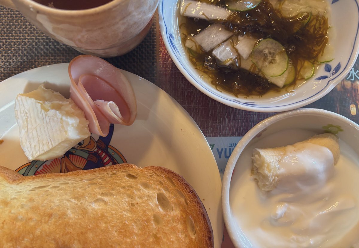 マンジャロ(2.5mg)3本目 5日目 朝食 ・トースト5枚切 ・ヨーグルト醗酵りんごon ・もずく酢 ・きゅうりハムサラダ ・紅茶 今日はインフルエンザ予防接種 マンジャロ打ってても どうもないと思いたい #マンジャロ #術前 #血糖値コントロール #変形性股関節症 来月 #人工股関節置換手術 pic.x.com/j7LwWOGusO