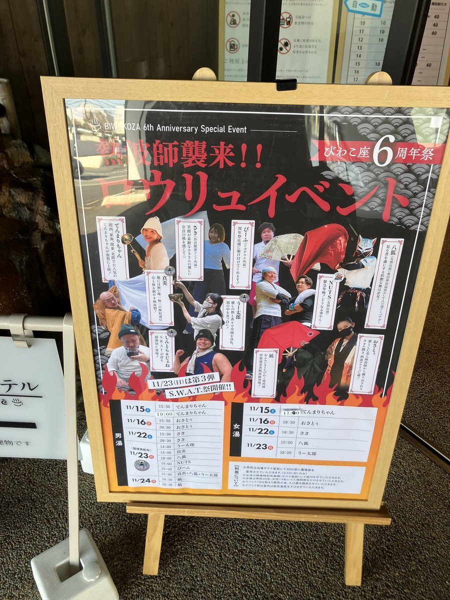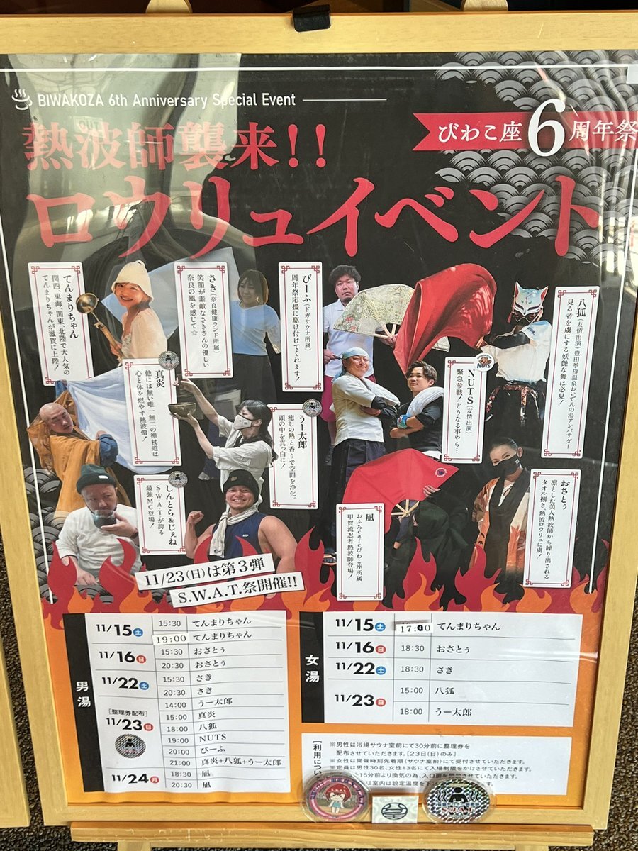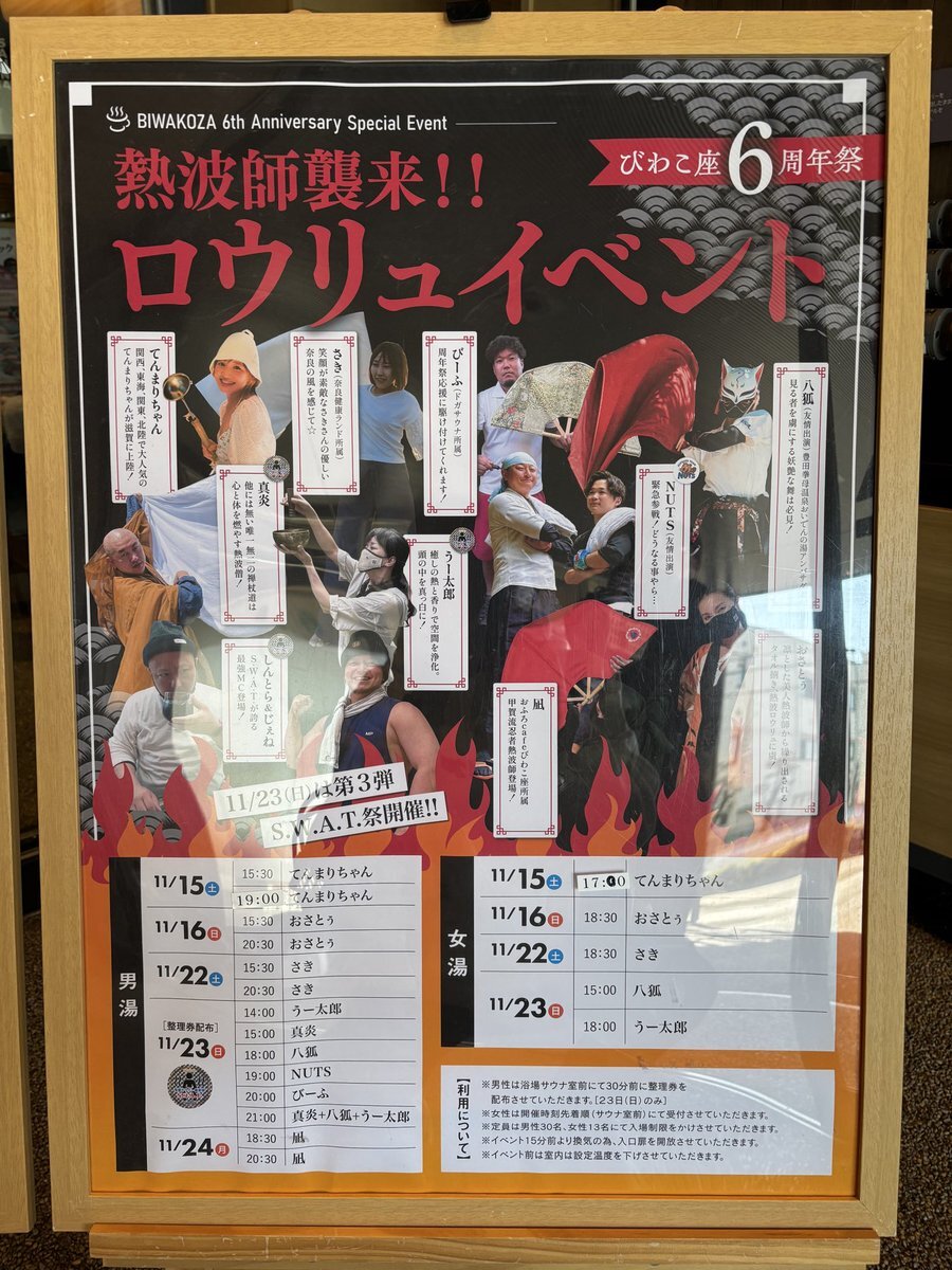 1年ぶりのおふろcafé びわこ座 豪華メンバーが勢揃い 6周年おめでとう🎊グース🔥 ラスト21時のロウリュイベントまで楽しみます😊 お昼の大衆演劇はチラッとイベント🐱整理券配布まで #ハク活89活 #変態サウナの輪を広げよう #松岡愛のサウナで乾杯! pic.x.com/hr91w55EEU x.com/ofurocafe_biwa…