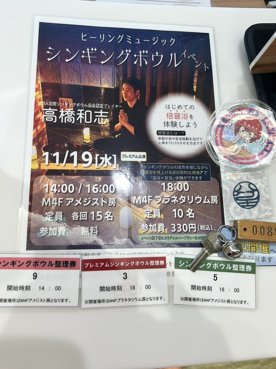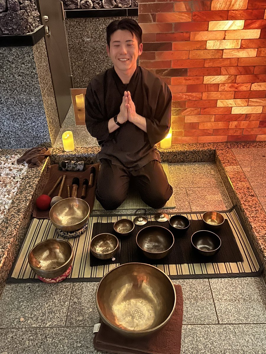 高橋かずし殿のシンギングボウル🥣歌う器イベント in ラクスパ名古屋 14時は蓮華座🧘で瞑想スタイル 16時は特等席でシャバーサナで癒される😊 18時はプラネタ坊にて鈴虫のBGMと金木犀の香りも堪能し最高のととのいへ ハーブ🌿ティー😋 #ハク活89活 #変態サウナの輪を広げよう #松岡愛のサウナで乾杯! pic.x.com/1ZSmRtnyMd