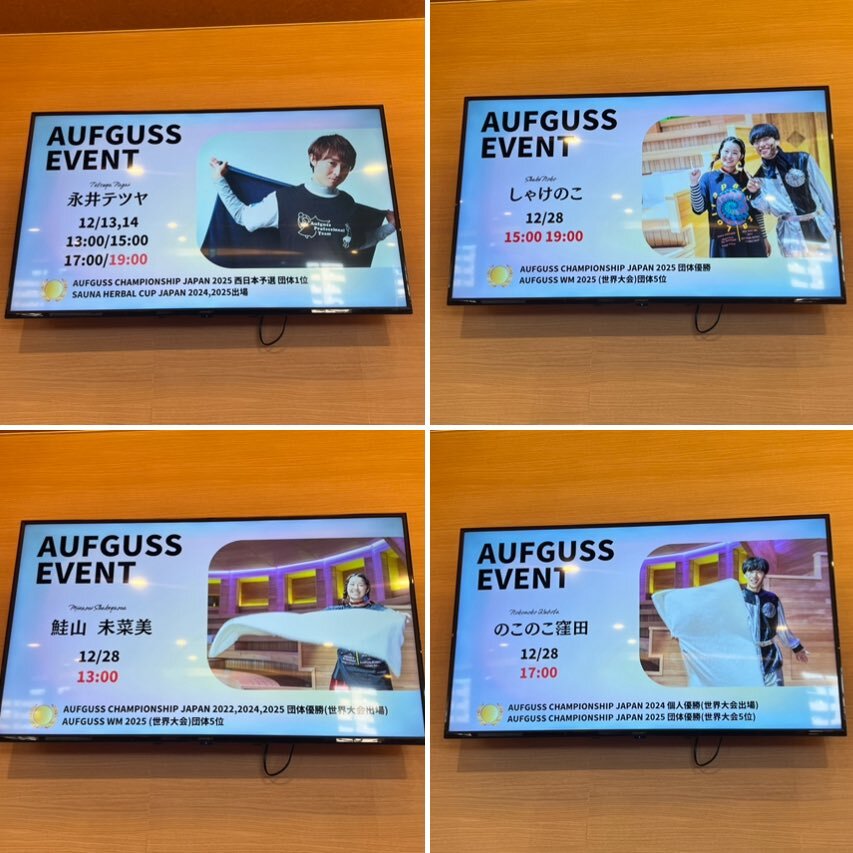 明日から4日間アウフグース遠征!🔥 今回は 名古屋から奈良へと続く、西日本遠征です🚄💨 各地で皆さまにお会いできるのが楽しみです! 11月 • 22日 / 23日 ラクスパガーデン名古屋👹 • 24日 SAUNA MONKEY🍌🐒 ※POPの日程は異なります🙇 • 25日 奈良健康ランド🎡