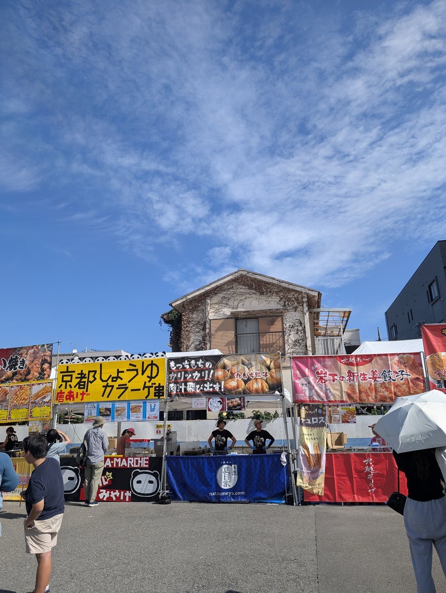 今日は川越に浮気中(笑) 青空の下、夏目兄弟と餃子売ってます🥟 丸広駐車場にて21時まで待ってます😁 #川越まつり #川越肉祭り #夏目家 #餃子 pic.x.com/KOUm0uvwk8