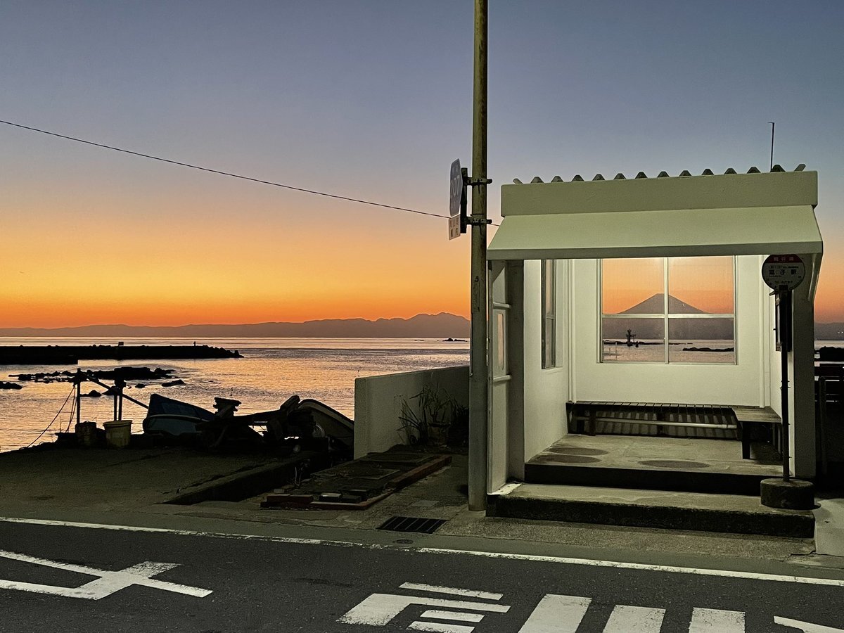 今日も一日お疲れ様でした 楽しい夜をお過ごしください☺️ 夕焼け空とシルエット富士…  真名瀬バス停🚏 #夕焼け #富士山 pic.x.com/1tUg3btjtg