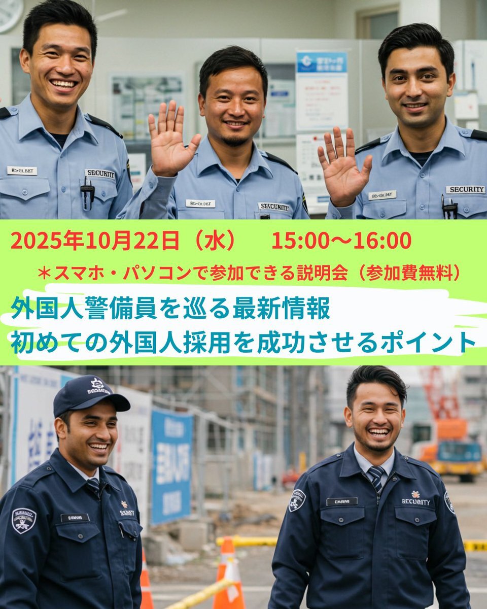【10/22(水)無料ウェビナー】 Guidable×AIKで『警備会社の初めての外国人採用から活用拡大の最新トレンド!』 を開催! 警備員として活躍できる身分系外国人って知っていますか?今警備業界で注目の理由を教えます! 👇お申し込みはこちら aik-security.co.jp/information/47… #警備会社 #警備員 #外国人採用 pic.x.com/dXHjYp1l1z