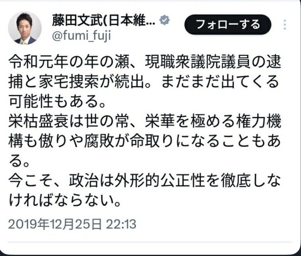 #外形的公正性 とは、 見た目でそうと見られればアウトということ。 だよね😃 #李下に冠を正さず #瓜田に沓を入れず #藤田文武共同代表 x.com/hashimoto_lo/s…