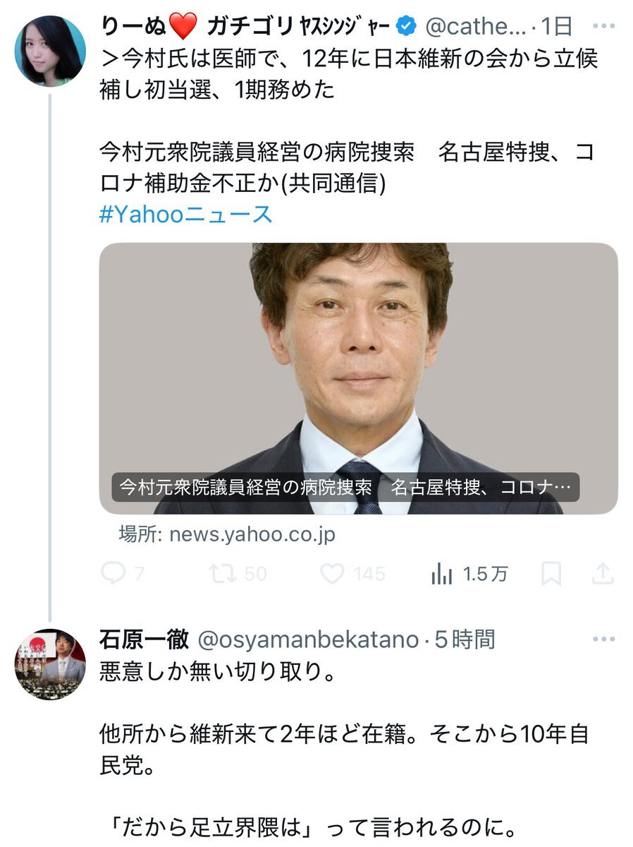 なるほど、維新の支持者には過度?に「外形的公正性」を求める方が多いのね。仮に法的に問題なくても「外形的公正性が担保されていない」と批判される。大変ですね(´Д`) 個人的には政策実現してくれれば良しとしますが。そのための政党なので。 #日本維新の会 #外形的公正性