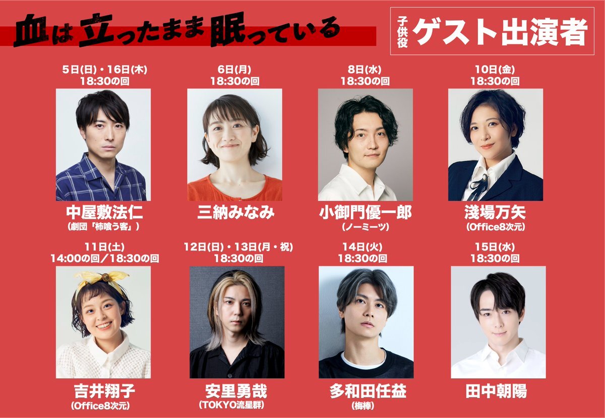 【ゲスト出演者決定!!】 #赤坂芸術祭2025 をより盛り上げるため、芸術祭プログラム出演者や中屋敷さんにゆかりのあるゲストをお招きし、【子供】という役を演じていただきます! 物語に大きな変化をもたらすとても重要な役どころとして見せ場がしっかりあります! お見逃しなく!