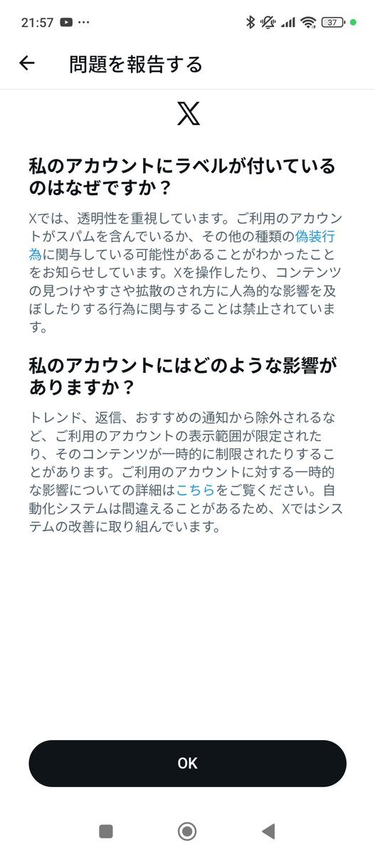 また、レッドフラッグ🚩 私のツイスパムor偽装工作認定w トレンドに悪影響をあたえているだと。 つまり中国人やイスラム教徒について論じるな、と #多文化共生は多文化強制 #移民政策断固反対 #中国人との共生は不可能 #イスラム教徒との共生は無理 pic.x.com/B4xHbQ06QL
