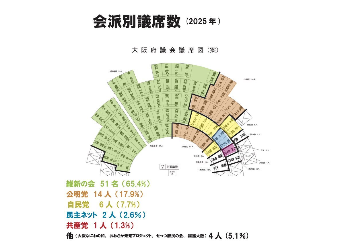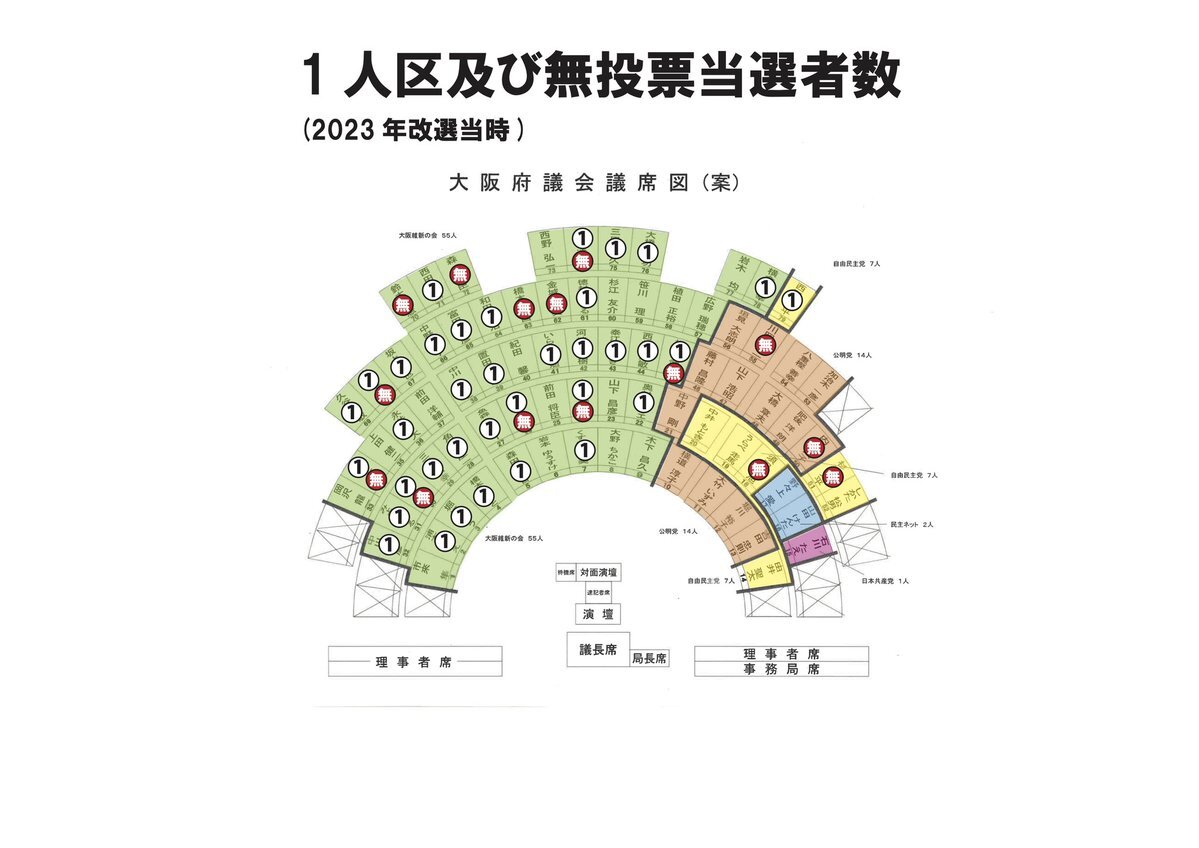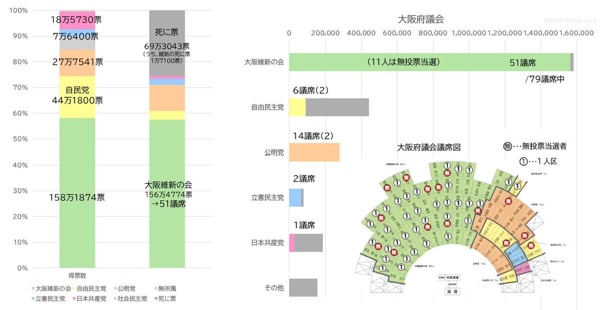 #大阪府議会#1人区 が多いので #死票 が増えます。得票率以上に議席を伸ばして権力を固定化するのが #大阪維新の会#身を切る改革 らしいですが #多様な民意を切る改革#権力の固定化 で合法的な独裁体制を築いたと思います。大阪府議会の定数を更に減らす計画があるそうです pic.x.com/rsNLxuWBrh x.com/yutaka_ishida/…