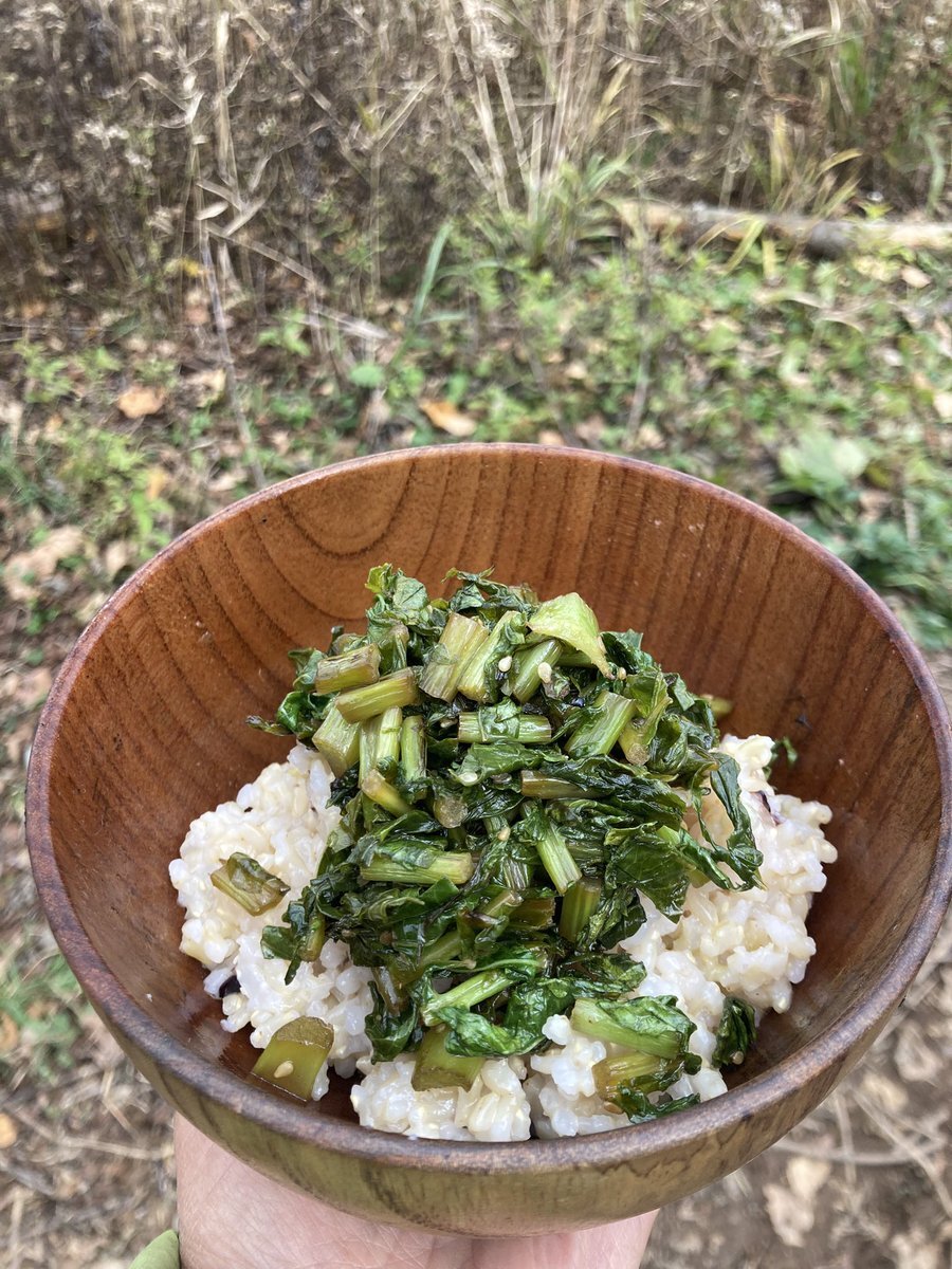 車中泊避難生活日記⛺️🚗 今朝はバケツの水にも薄氷 冷え込みました〜 久しぶりに大根葉炒めのっけごはん😍 うんまい😋 大根葉は無農薬無化学肥料じゃないと変な苦味があってガッカリするのよね🌿 #香害と農薬からの避難 #多種化学物質過敏症の夫と #香害で社会から排除されたけど楽しく生きるのだ pic.x.com/GkDG4MH62A