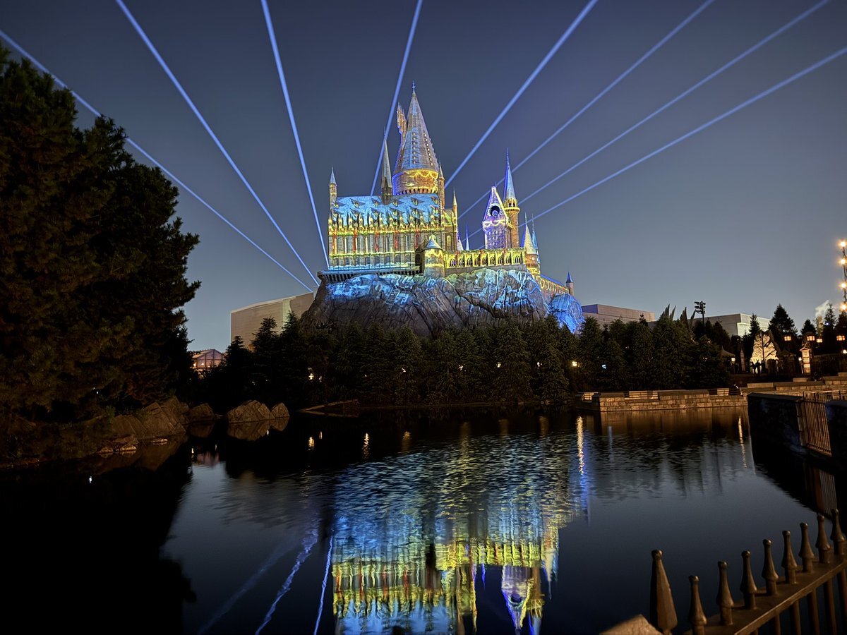 夜のお散歩。 風が少しあったので鏡面にはならなかったけど、凄い綺麗でした〜。 ホグワーツ城は、ほんまこの時期の夜に見てほしいな〜。 #USJファン #夜のお散歩 pic.x.com/J07g37l29J