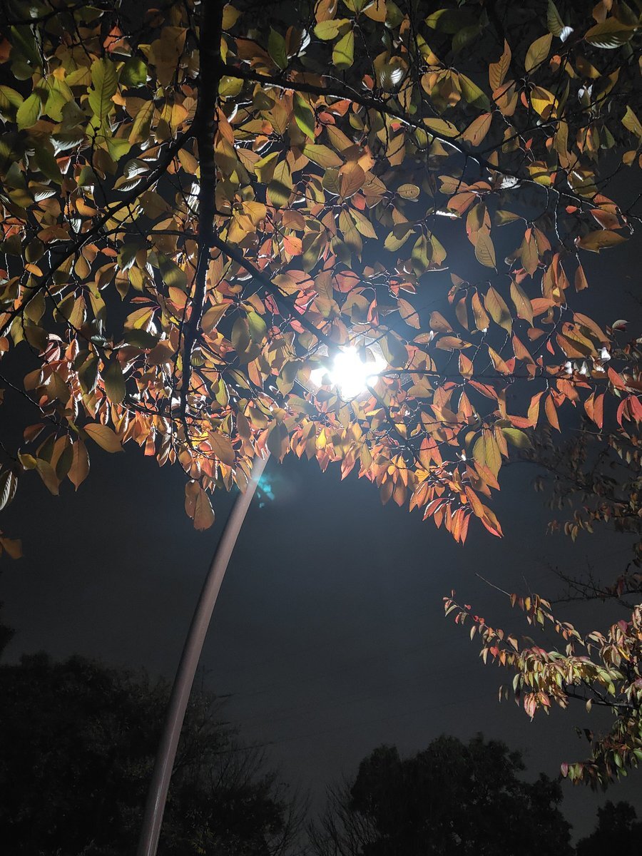 (「`・ω・)「 令和になって初めてマトモに木々がちゃんと紅葉している気がする。 #桜紅葉 #夜のお散歩 #今日のタルトさん #ナニソレオヤツ #オヤツではありません pic.x.com/fQteYoZbJJ