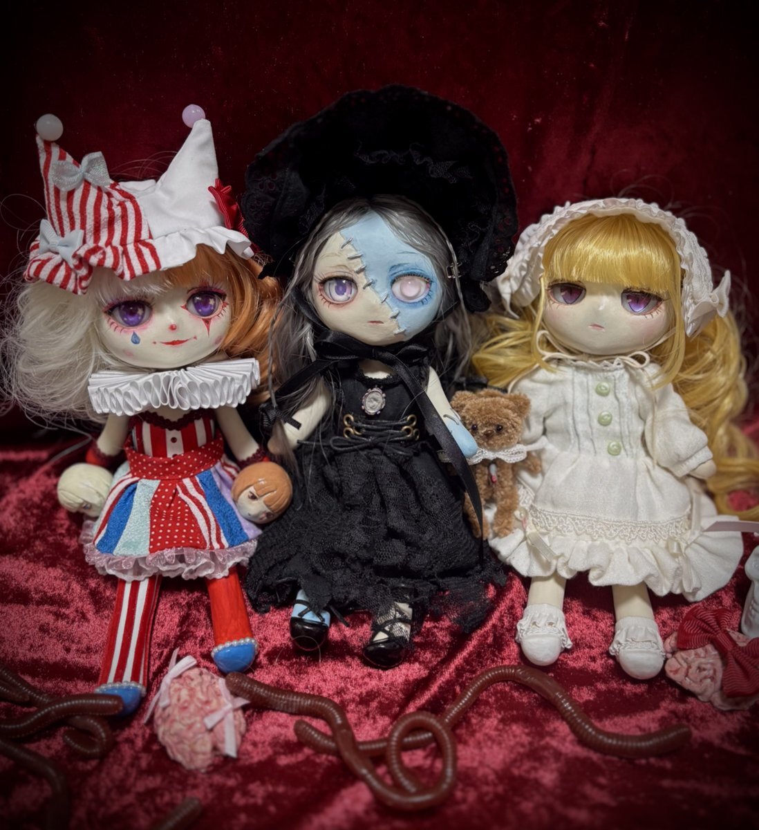 ご紹介ありがとうございます!ホラー仕様になってて嬉しい🥹 こちらの3体を出展します! #夢見るギニョール展 pic.x.com/aJA5vYwX7h x.com/guignolinfo/st…