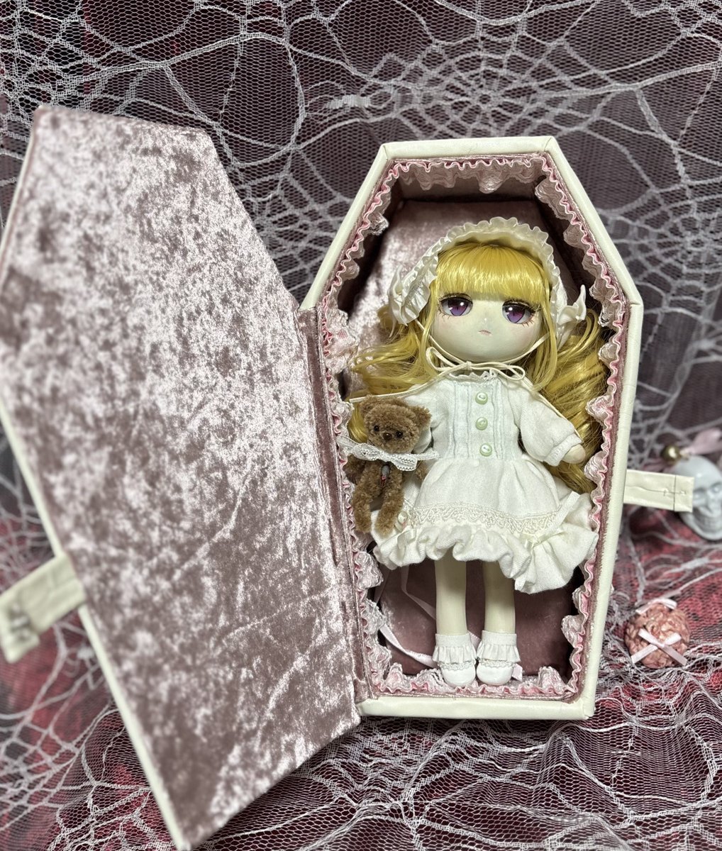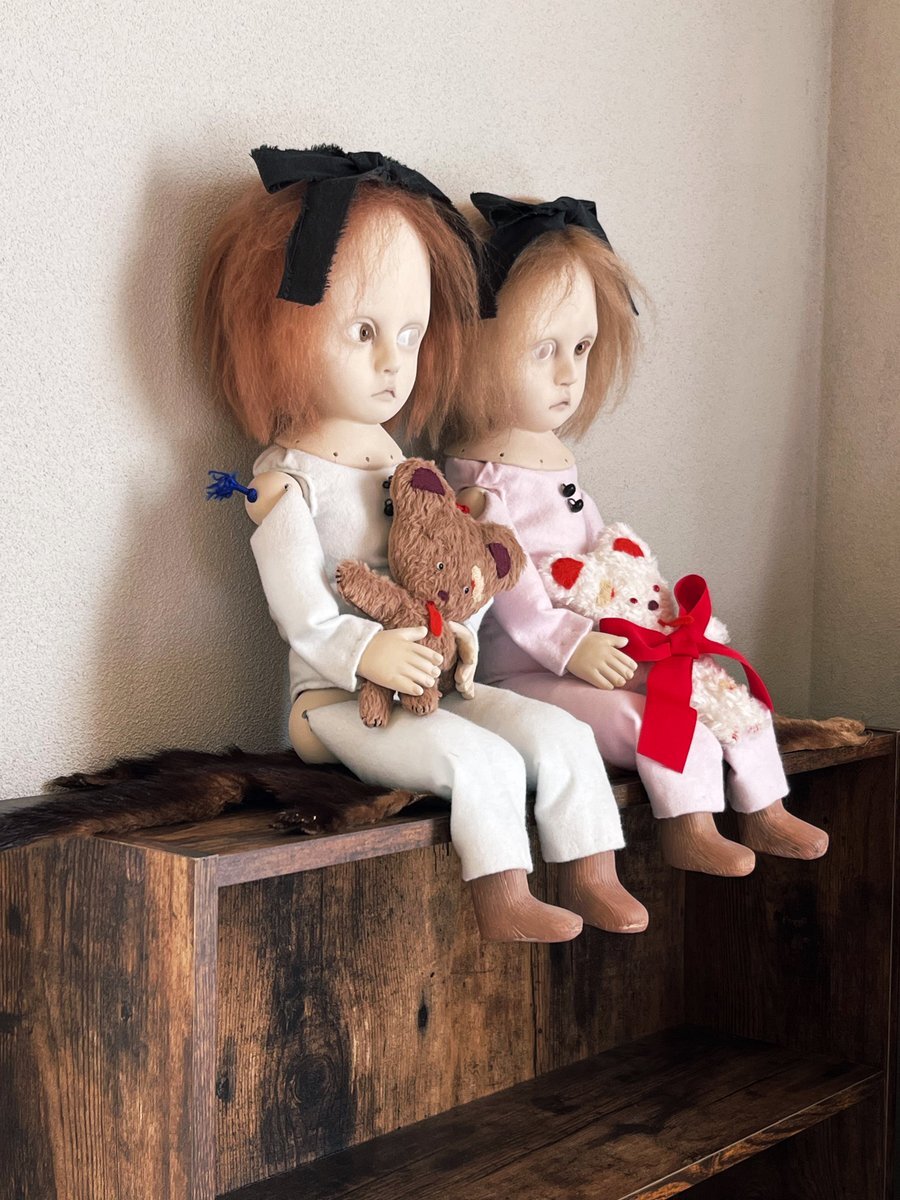 11/28〜12/2 #夢見るギニョール展 -夜の映画館- 新作その1 「どっちがやった?」🧸🔪 ワンピースとヘッドドレスが着せ替え可能で、下着と靴はボディについています。 専用ふわふわ棺桶ベッド付き。(観賞用で持ち運びには適していません) pic.x.com/jLWWVqg0UF