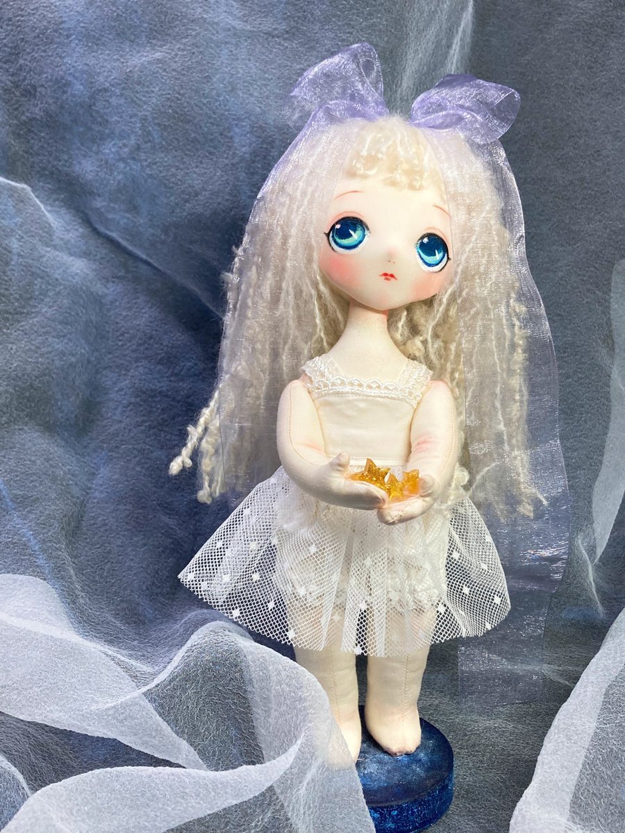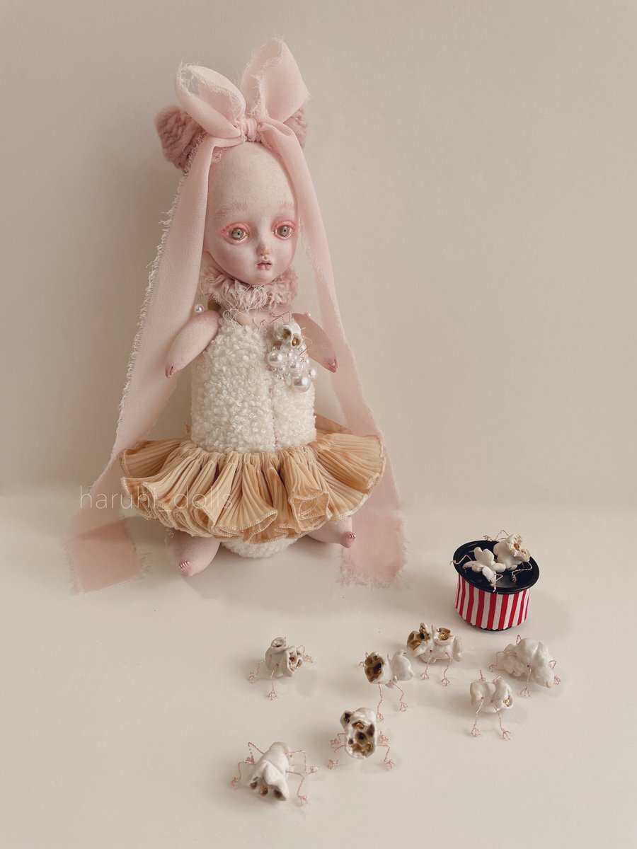 #夢見るギニョール展 #夜の映画館 に参加します。 今回は「屋根裏のルル」という作品を出展します。 型紙から起こして、いつもよりちょっとむっちりめの女の子です。淡い紫のリボンも気に入ってます。 11/28~12/21、大阪のギニョール @Guignolinfo さんで開催されます。会期後半からは通販も。 x.com/magic_sugar/st…