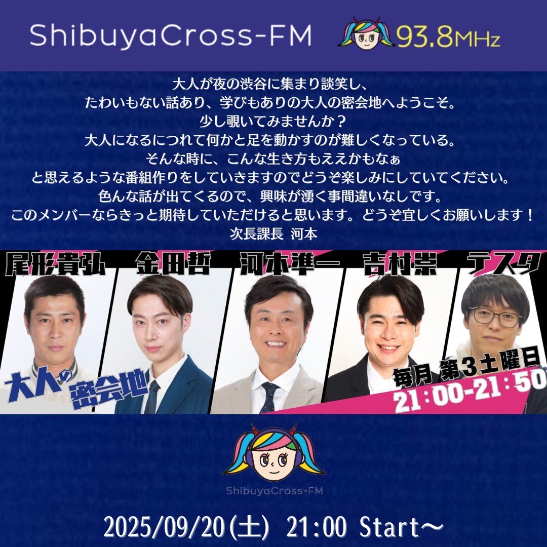 @otonamikkaichi 大人の密会地 番組中や番組前 お写真や情報などなどを 貼っていきます!^_^ よろしくお願い致します!^_^ #次長課長 #河本準一 #吉村崇 #尾形貴弘 #金田哲 #大人の密会地 #渋谷クロスFM pic.x.com/u6e9FkdLTZ