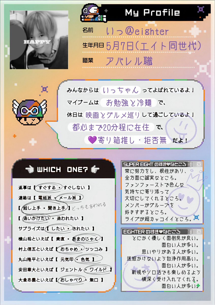 🌻お友達探し中🌻 ▪︎SUPER EIGHT(箱推し/元錦戸担) ▫︎Aぇ! group(リチャ担) ▪︎同担他担◎ ▫︎tohoku/90line 最近はぼっち参戦多め! #eighterさんと繋がりたい #A担さんと繋がりたい #大人eighterさんと繋がりたい