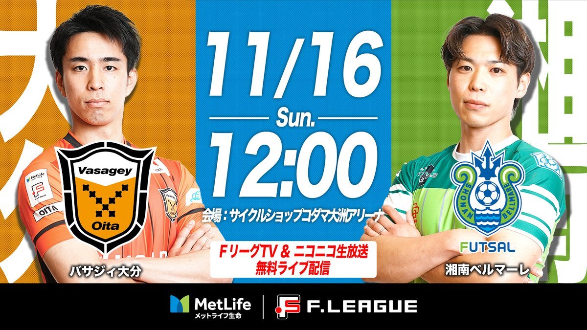 ✅今週の無料試合配信🆓 📺#ニコニコ生放送 📅11.16 12:00 ⚔️#大分vs湘南 🏟サイクルショップコダマ大洲アリーナ 🎙️実況:長谷川ゆう 📺live.nicovideo.jp/watch/lv348775… @SBFC_OFFICIAL #FリーグTV|毎節1試合無料 #フットサル #ついてこれるか #感動が加速する