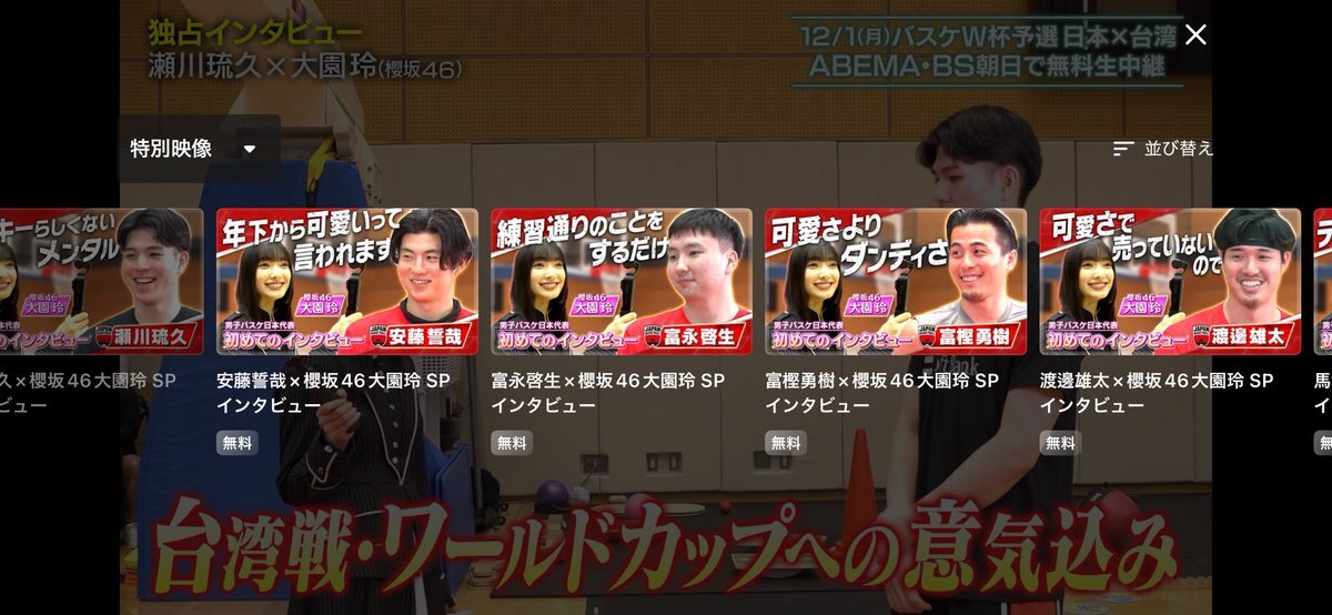 VTRゲスト 櫻坂46 大園玲 男子バスケットボールFIBAワールドカップ予選 日本×台湾 @ABEMA で12月1日 19:30から放送 #櫻坂46 #大園玲 abema.go.link/1YN7f