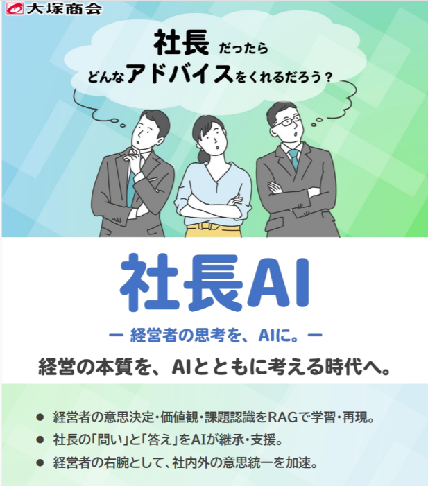 ✨【社長AI】限定5セット販売開始✨ ー経営者の思考を、AIにー 社長の経営視点を日常で活用 ✅新人研修で「社長の考え方」を学ぶ ✅プロジェクト意思決定で「社長なら?」を確認 ✅社内報の補完としての活用も⭕️ リンク下部のお問い合わせフォームから otsuka-shokai.co.jp/erpnavi/keiei-… #社長AI #大塚商会 pic.x.com/biTbJVIGwT