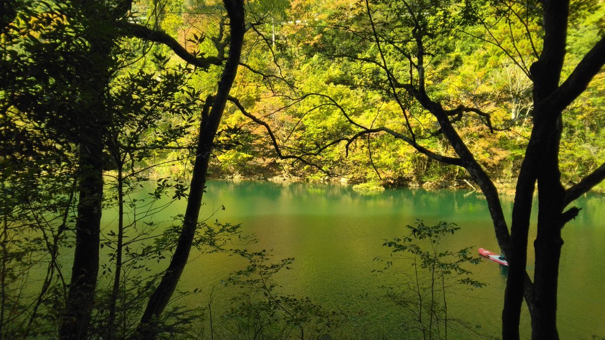 エメラルドグリーンの湖面に、紅葉がグラデーションとなって写り込み、とても美しかった! #奥多摩 #大多摩ウオーキングトレイル #紅葉 pic.x.com/swsOByNi7g x.com/HiroshiK1255/s…