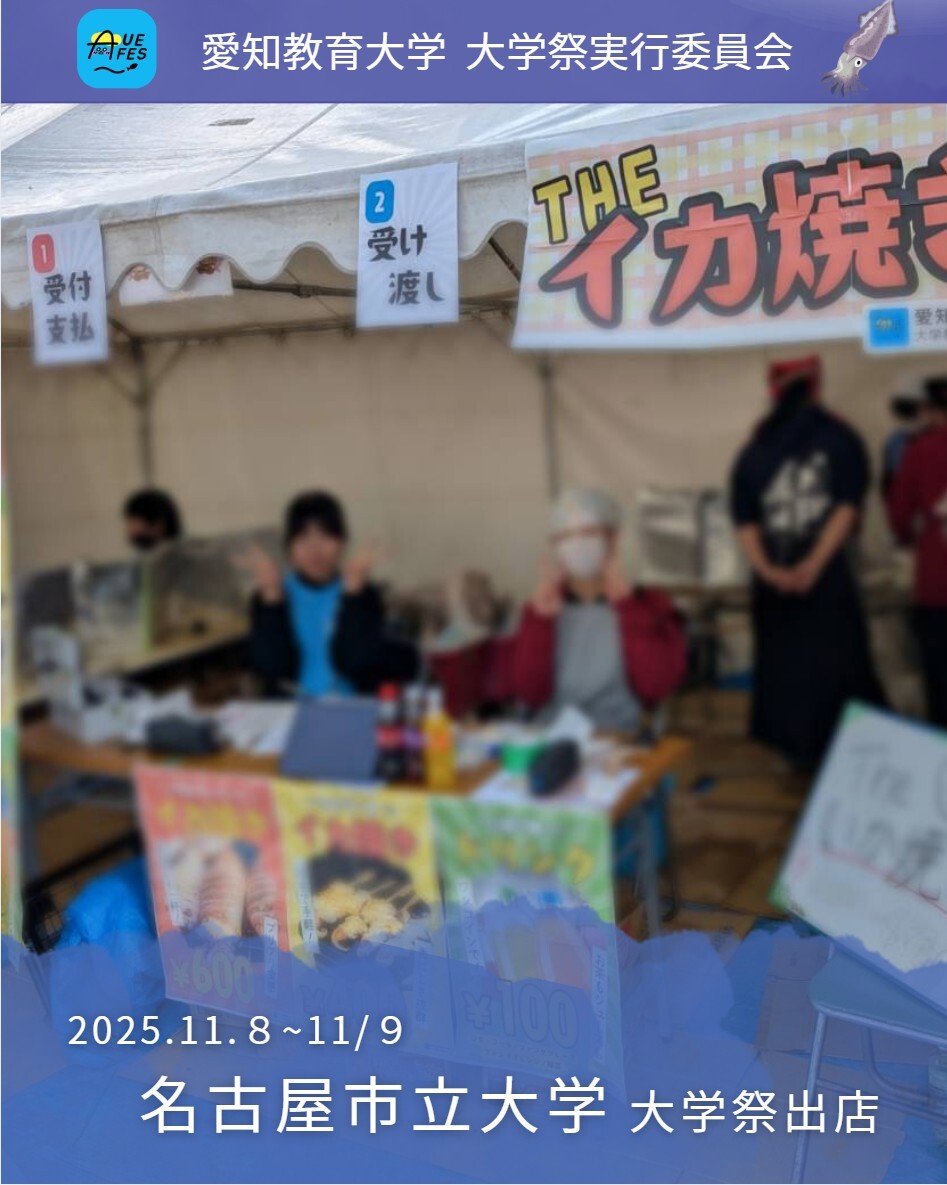こんばんは🌃 大学祭実行委員会です! 11/8,9に名古屋市立大学大学祭で出店を行いました!! 1日目、2日目と来てくれた方々はありがとうございました! 秋の祭典まで全力で駆け抜けるので応援よろしくお願いします🔥 #愛知教育大学 #大学祭 #名古屋市立大学 #名市大 #愛教大 #大学祭実行委員会 #名古屋 pic.x.com/i4X6lnyQJp