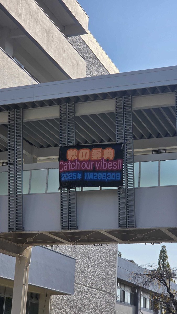 こんにちは☀️ 大学祭実行委員会です!! 先日、渡り廊下に横断幕を設置しました!!いよいよ秋の祭典も残り2週間を切りました! 当日を楽しみにしてください💪 #愛知教育大学 #大学祭 #大学祭実行委員会 #愛教大 pic.x.com/MG4G0GPwT6