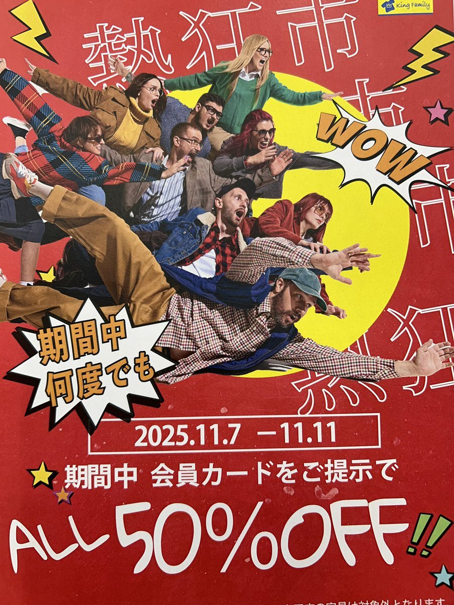 【大宮上小町店】 本日、熱狂市‼️最終日です✨ キングファミリーのカードのご提示で全品半額です✨✨🌸 皆様のご来店を心よりお待ちしております✨✨✨✨✨✨✨✨✨✨✨✨✨ #キングファミリー #大宮上小町店 #古着 pic.x.com/5KIJOEkqBN