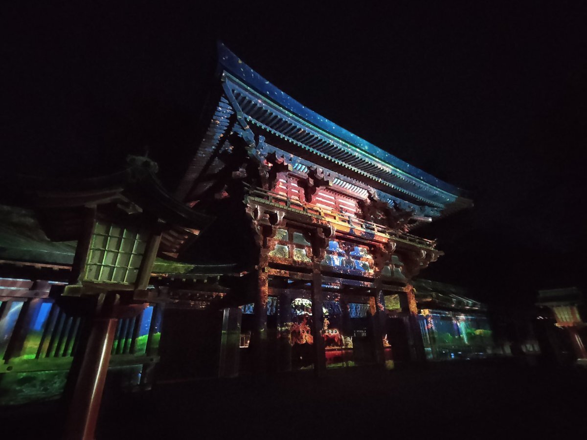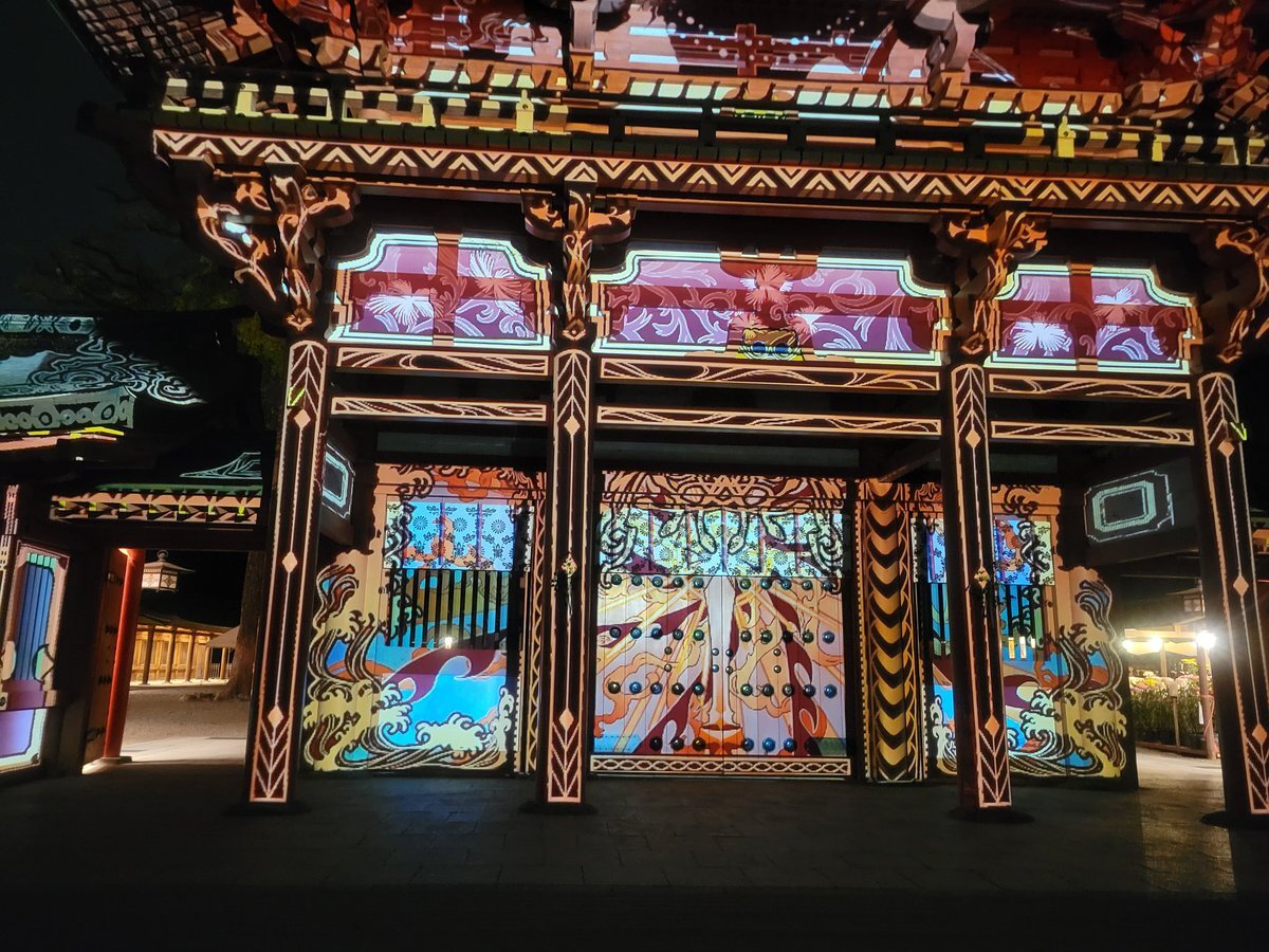 大宮氷川神社⛩️ プロジェクションマッピング開催中 仕事帰りに17:30からの1番目を観賞 楼門への投映以外にも楽しめた #大宮氷川神社 #プロジェクションマッピング pic.x.com/iTWwX5zlmN