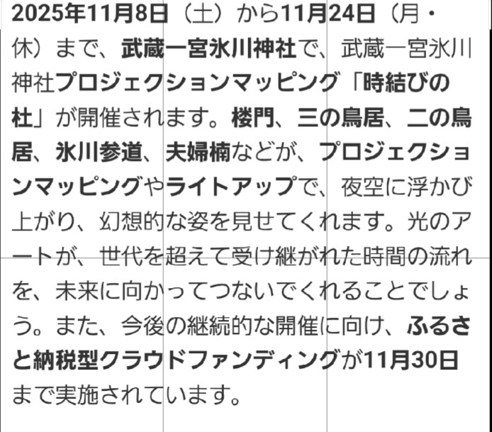 武蔵一宮氷川神社初のプロジェクションマッピング『時結びの杜』開催! k-triangle.amebaownd.com/posts/58067303 #時結びの杜 #武蔵一宮氷川神社 #大宮氷川神社 #氷川神社 #大宮盆栽村100周年 #大宮盆栽 #プロジェクションマッピング