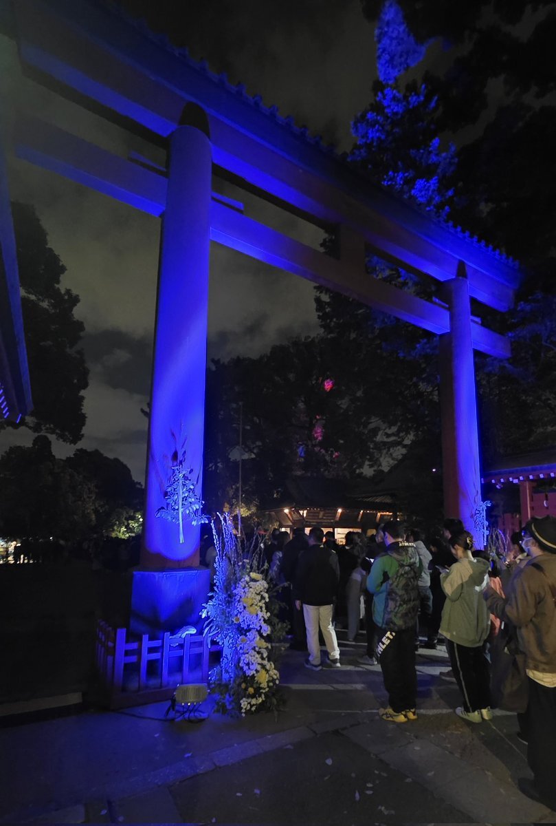 今氷川神社でプロジェクションマッピングやっていてどんなのか見てみようと思ったら氷川参道二の鳥居近くまで並んでるなので神社手間の三の鳥居の写真だけ撮ってみた #大宮氷川神社 #プロジェクションマッピング #行列 #11月8日~24日まで pic.x.com/93FDMcMZvn