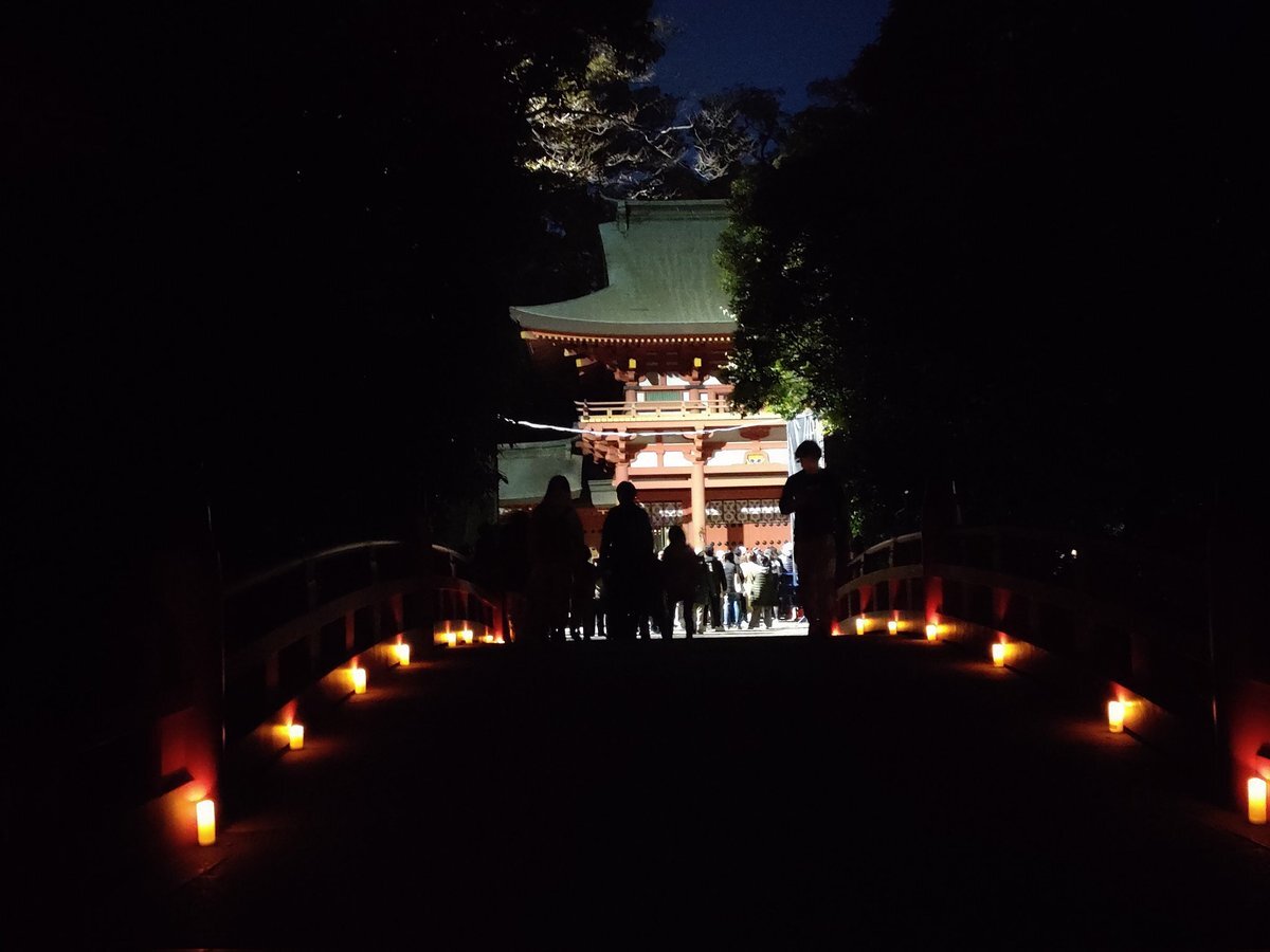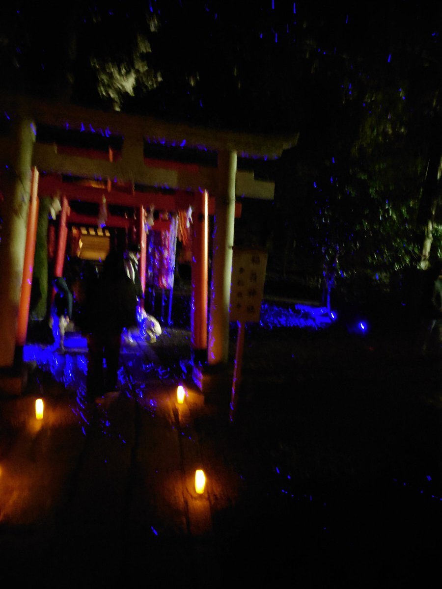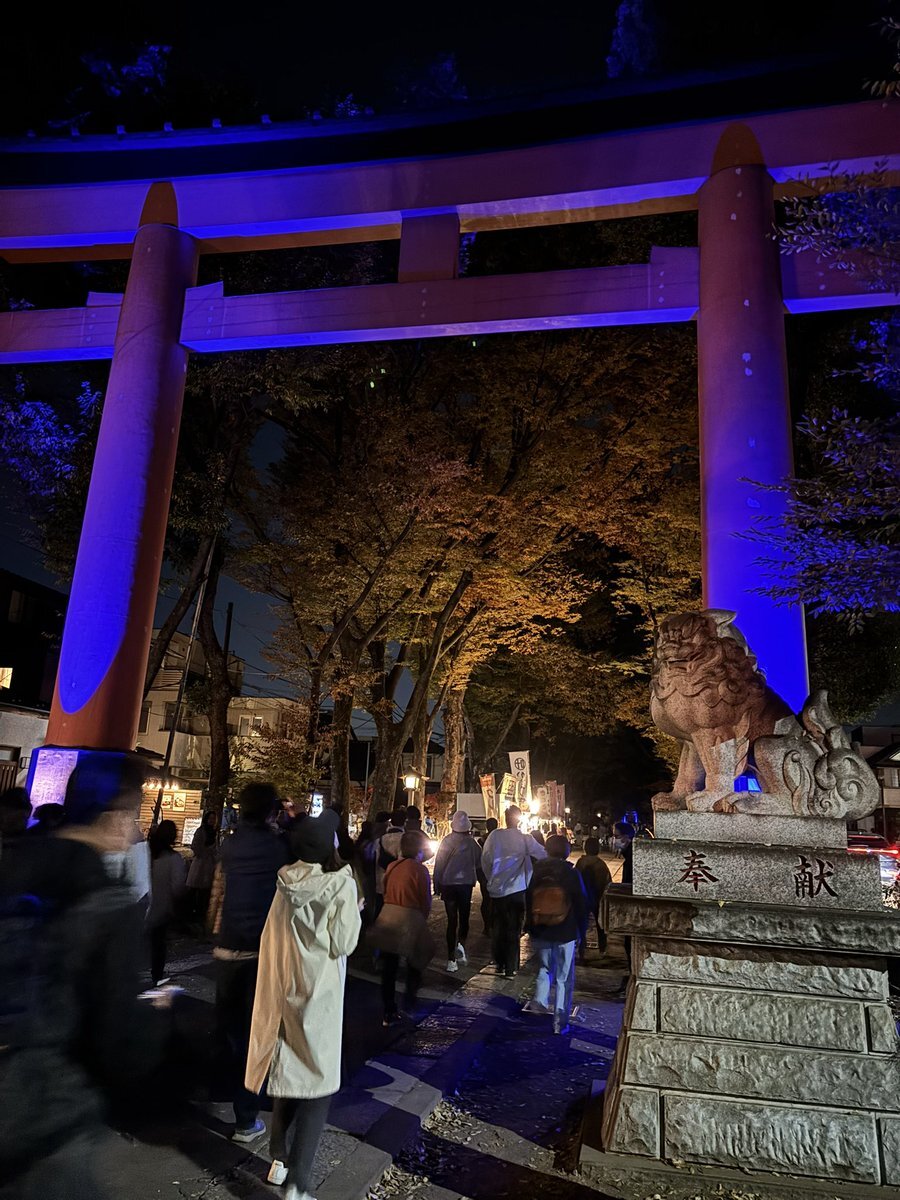 こんな感じです〜。いつもなら人気がなくなるであろう時間帯にガヤガヤしてる夜の神社って不思議な感覚。稲荷神社のライトアップが幻想的だった #大宮氷川神社 #プロジェクションマッピング pic.x.com/gFNh0kISYb