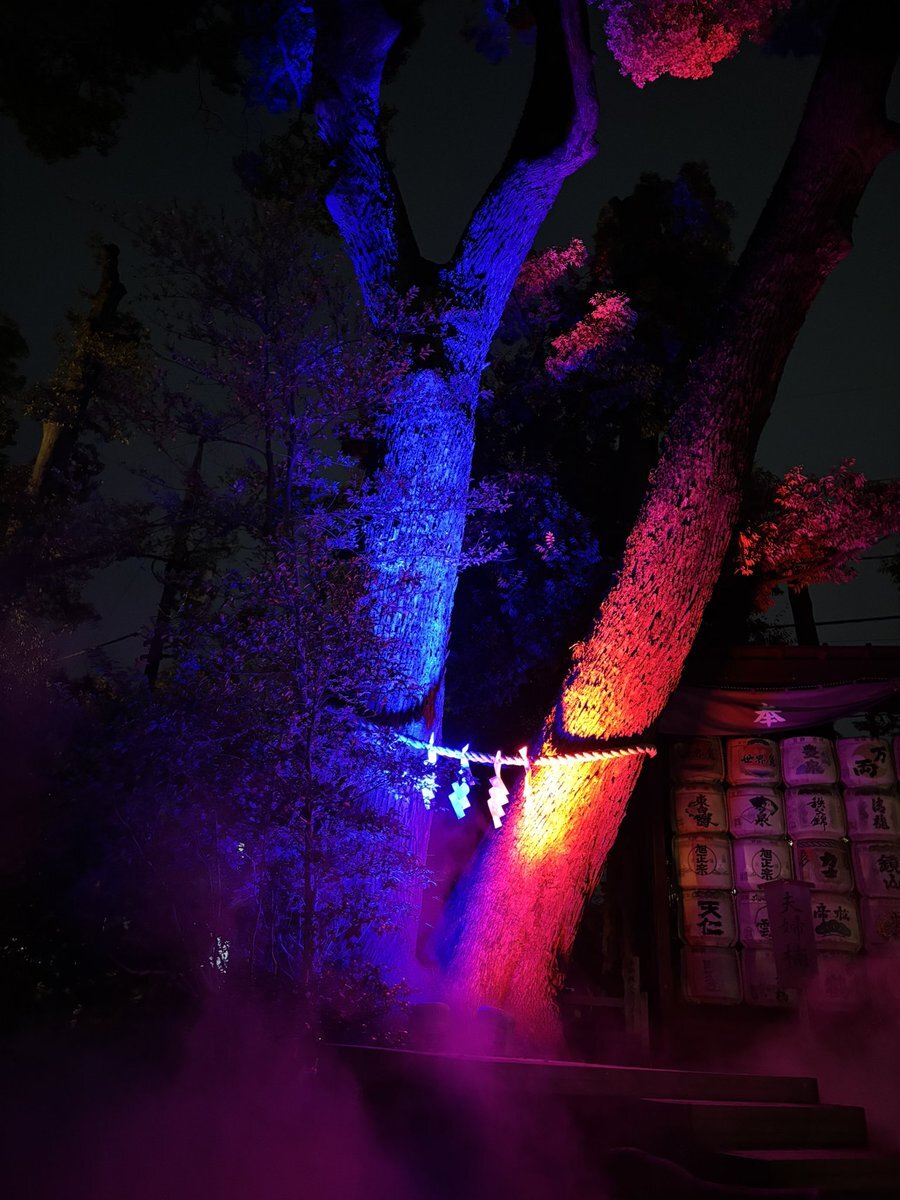 ライトアップされた三の鳥居⛩️をくぐると、樹木🌳にもプレジェクションマッピング! 煙の演出も幻想的です💗 2025年11月8日〜11月24日 月〜木:17:30〜20:00(最終入場時間:19:30) 金土日祝:17:30〜21:00(最終入場時間:20:30) #武蔵一宮氷川神社 #大宮氷川神社 #プロジェクションマッピング pic.x.com/BMZHBCfjTB