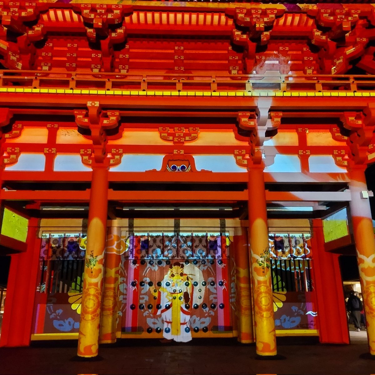 #武蔵一宮氷川神社 のプロジェクションマッピング見て来ました テーマは #時結びの杜 楼門に映し出される映像は壮大で圧巻❣️ 11月24日まで開催中 お近くの方は是非😊 #大宮氷川神社 pic.x.com/C5AC9KekhU