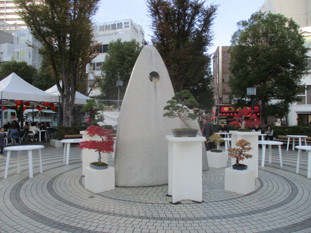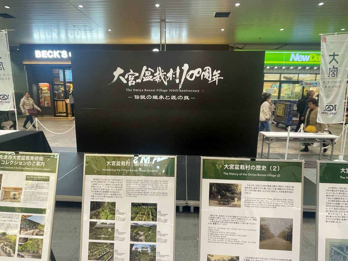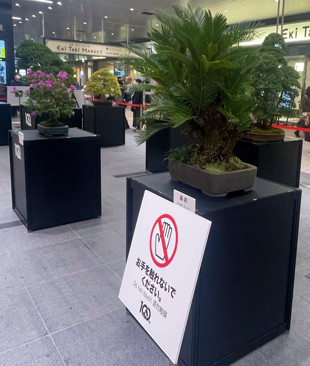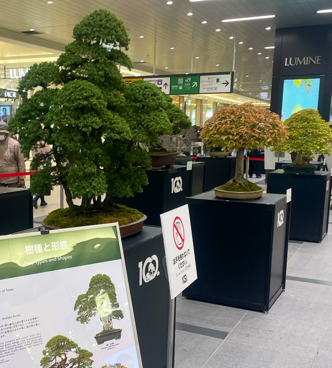 大宮駅東西連絡通路に展示された盆栽と鐘塚公園の「盆栽夜市」(昼間ですが)。 #大宮盆栽村100周年 #盆栽 #大宮駅 #鐘塚公園 #盆栽夜市 pic.x.com/7cnqNx7fQe