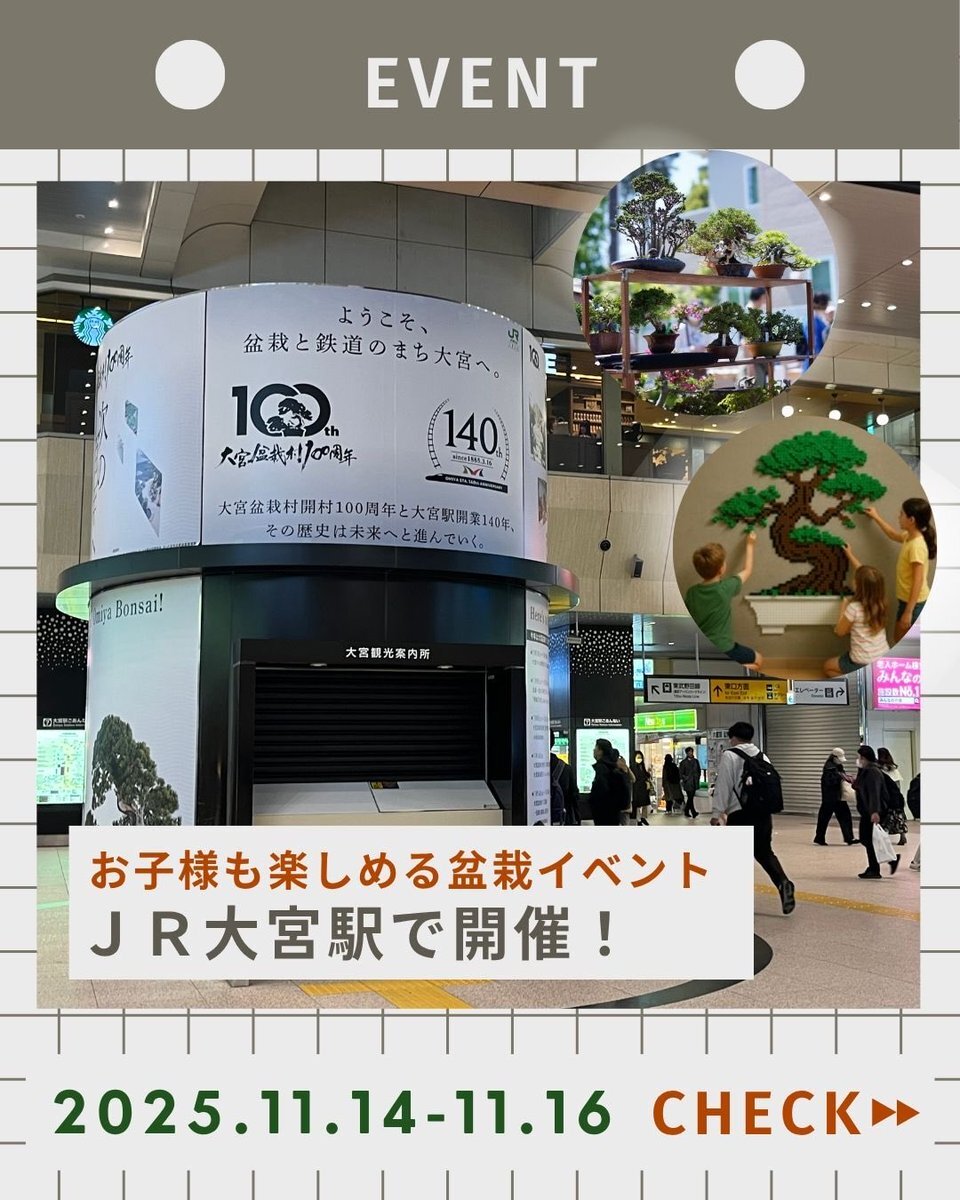 🪴✨お子様も楽しめる盆栽イベント #大宮駅 で開催!! #盆栽 展示や盆栽販売、ステージイベントなどをお楽しみいただけます⭐️ ぜひお越しください💨 🗓️日時  11月14日〜16日  10時〜20時  ※11月16日は17時まで 📍会場  JR大宮駅東西連絡通路 city.saitama.lg.jp/004/001/002/00… #さいたま市