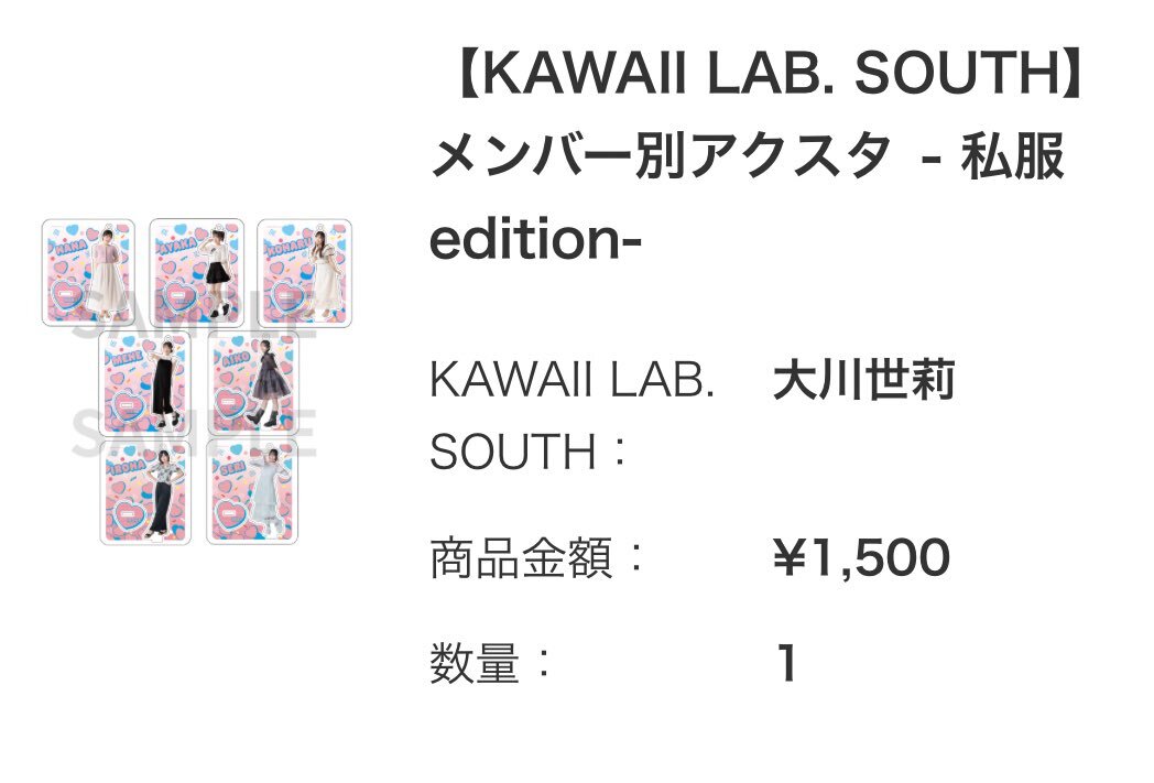 サウスちゃんグッズ販売〜❣️ 🌟私服のアクスタꈍ◡ꈍ 🌟私服・アー写のランチェキ (ランダムサイン入り)⸝⸝ʚ̴̶̷̆_ʚ̴̶̷̆⸝⸝ 販売期間は11/30(日)21:00〜❕先着発売だからチェックだよぉ>₃< ぜひせりちゃんを お出かけのおともにしてね♡ かわいいすぎるから🥺 #カワラボサウス #大川世莉 x.com/kawaii__lab/st…