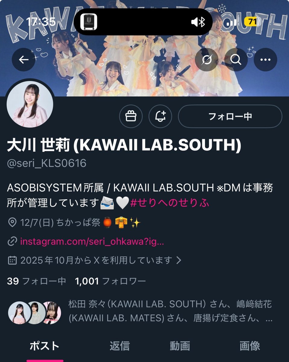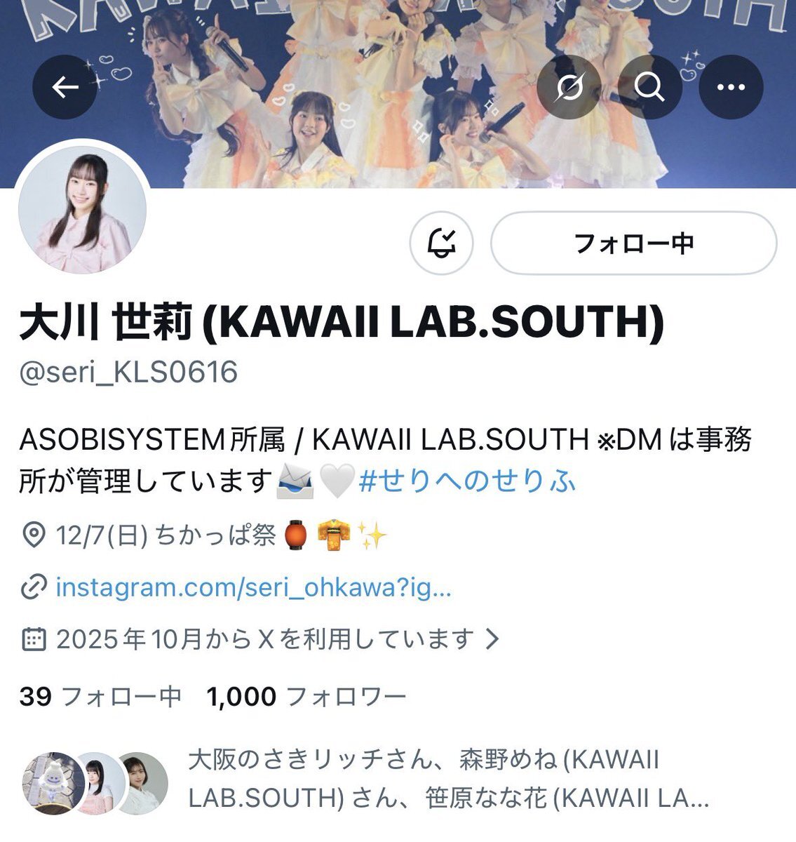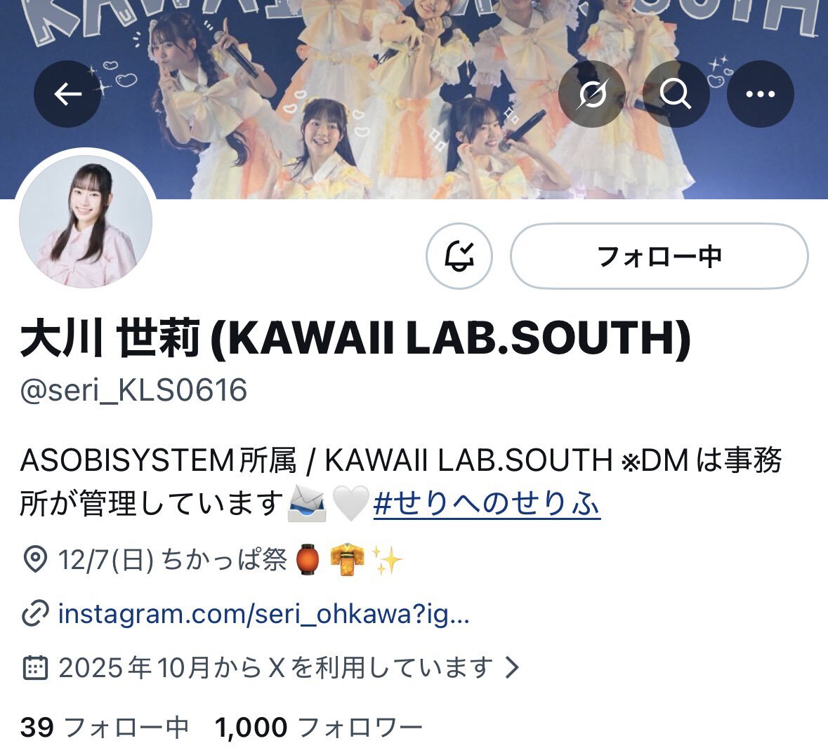 世莉ちゃん1000人達成おめでとう🎉 どんどん有名になっていく世莉ちゃんをこれからも応援し続けるよー!!! 次は1500人だ!!! #カワラボサウス #大川世莉 #せりへのせりふ pic.x.com/ZwtzEmv8vY