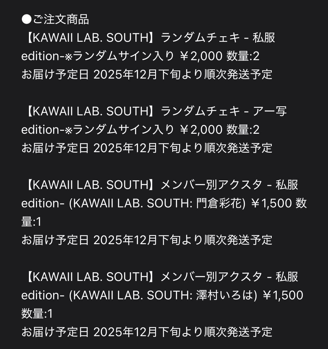 🌟🤍 #カワラボサウス グッズ販売情報🤍🌟 KAWAII LAB. SOUTH 新グッズの販売が決定 - ̗̀📣🕊 👗メンバー別アクスタ -2025私服edition- 📸ランダムチェキ -2025私服edition-  ※ランダムサイン入り 📸ランダムチェキ -2025アー写edition-  ※ランダムサイン入り 【販売期間】 🗓️11/30(日)