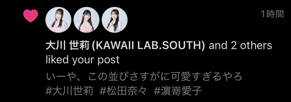 すごいちゃんといいねの順番もこの並び方ですごい笑 #大川世莉 #松田奈々 #濵嵜愛子 pic.x.com/vDGI3P9iI1