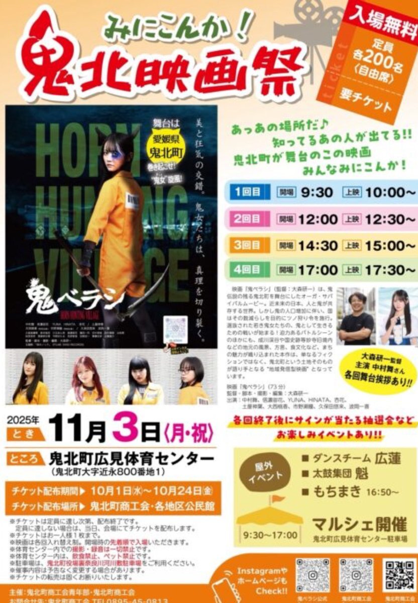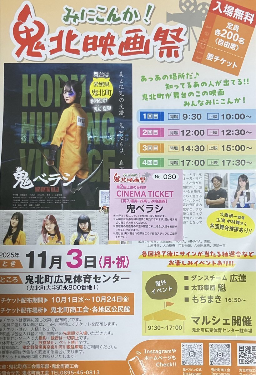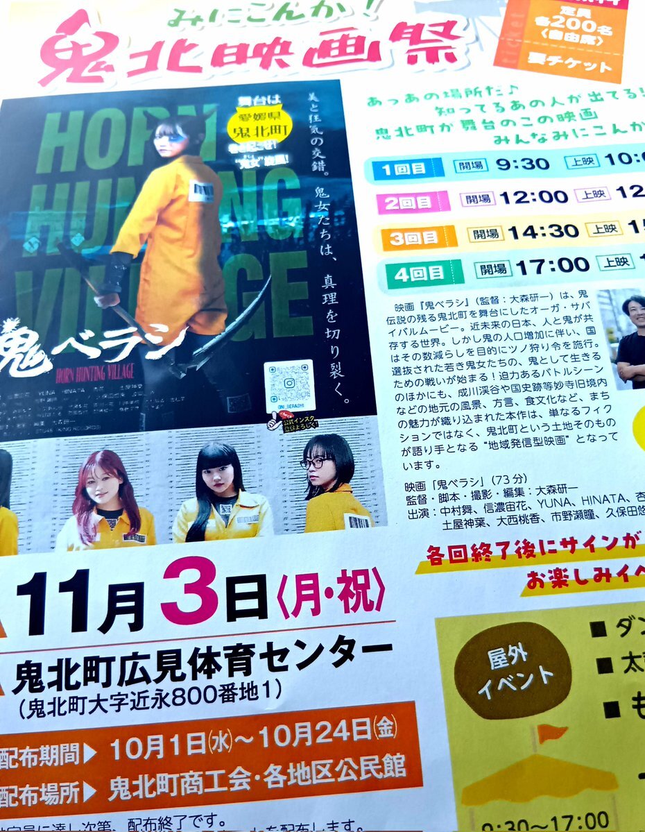 「鬼ベラシ」鬼北町にて上映! ぜひ🙇♀️ 11/3(月祝) 鬼北町広見体育センター(役場横) ①10:00 ②12:30 ③15:00 ④17:30 各回 #中村舞 さん #大森研一 監督の舞台挨拶/抽選会 🎫無料(要チケット) 配布期間:10/24(金)迄 kihoku-sci.jp/information/28… 上映会詳細 kihoku-sci.jp/information/28… 餅まきも😙 pic.x.com/6r8bgUek0Z