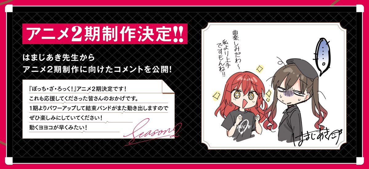 #ぼっち・ざ・ろっく!』 アニメ2期制作決定! 今回は原作者はまじあき先生からの メッセージをいただきました🎸 #大槻ヨヨコ #がんばれヨヨコ #負けるなヨヨコ pic.x.com/cTOLsHcWYb