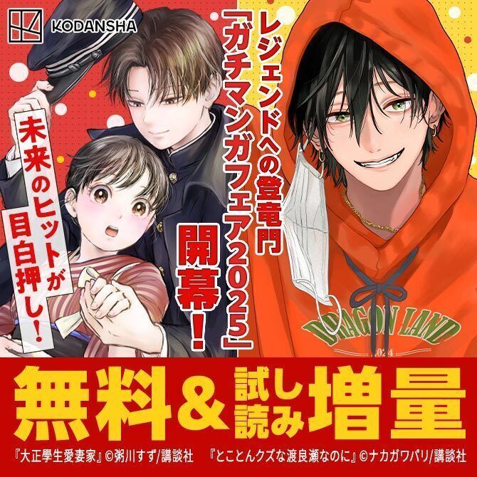 / 未来のヒットが目白押し!レジェンドへの登竜門 「ガチマンガフェア2025」開幕! \ #大正學生愛妻家 @sazamegoto #とことんクズな渡良瀬なのに @snm_paris など 受賞作や次ヒット作が無料&試し読み増量✨ buff.ly/Ch1FVq8 pic.x.com/R5gvTe6aL2