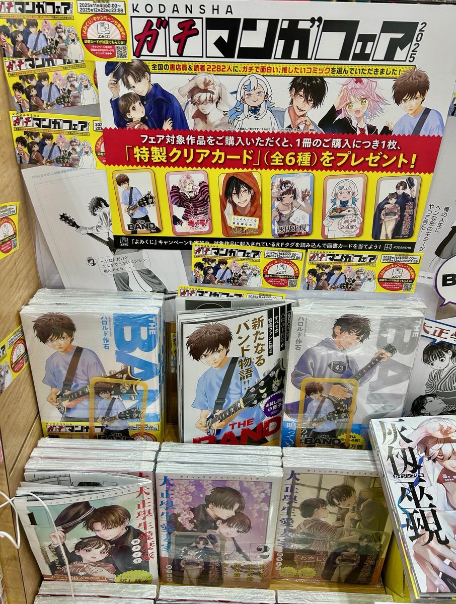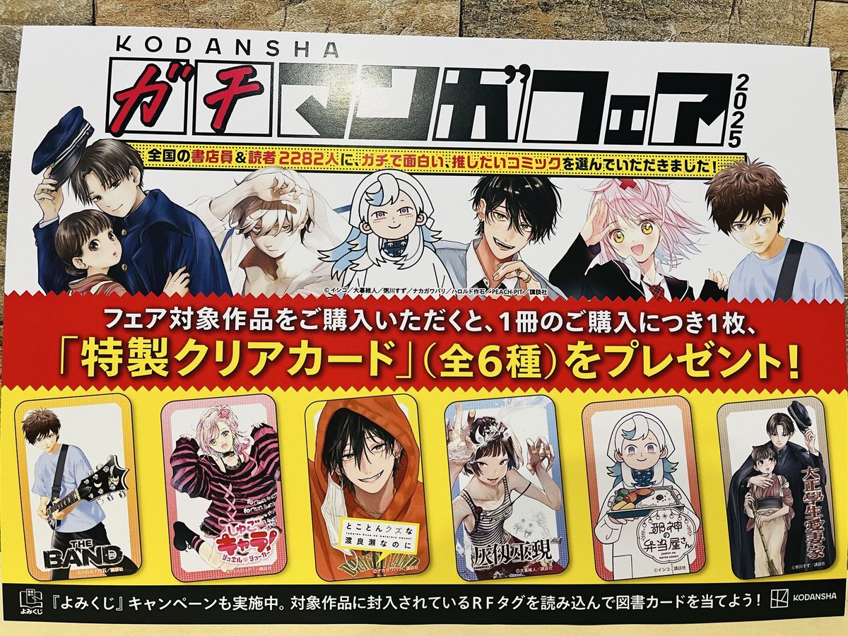 マンガを愛する書店員と読者が選んだ講談社 #ガチマンガフェア2025 開催😆 受賞作品は… #THEBAND #しゅごキャラジュエルジョーカー #邪神の弁当屋さん #灰仭巫覡 #とことんクズな渡良瀬なのに #大正學生愛妻家 おめでとうございます🎉 今ならクリアカード付いてます🤩 pic.x.com/TOkVrmArs7