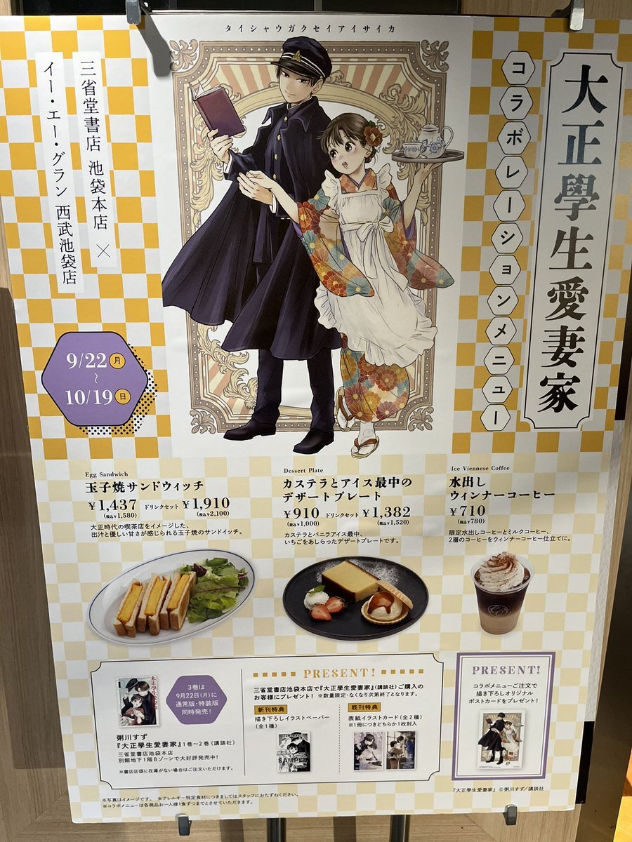 先生おめでとうございます! 大分経ってしまいましたが、コラボカフェ行ってきました! 甘く、美味しく、ひと休みにぴったりなデザートとコーヒーをいただきました🙏 展示も尊く、素敵ワールド全開でした!お手紙も...😭 これからも #大正學生愛妻家 推していきます! @sazamegoto @oishi_umehara x.com/sazamegoto/sta…