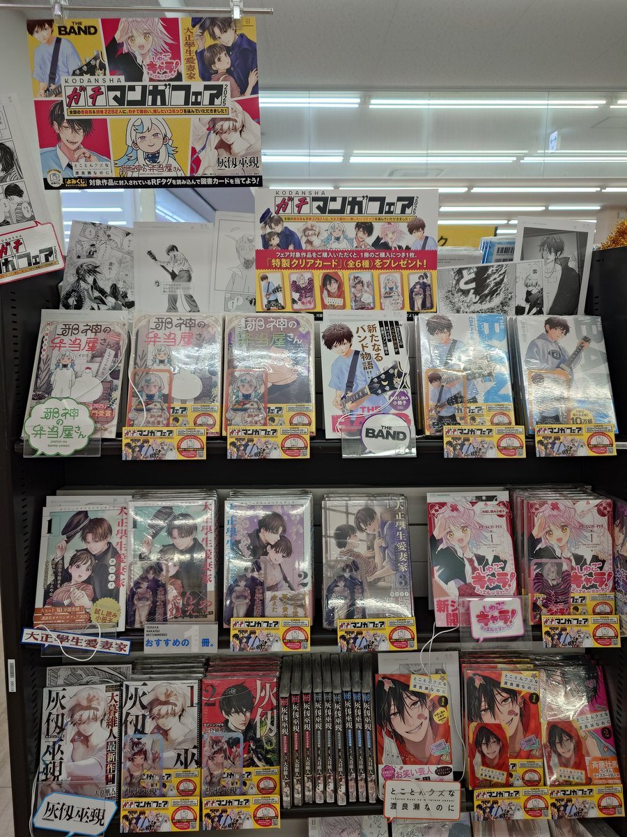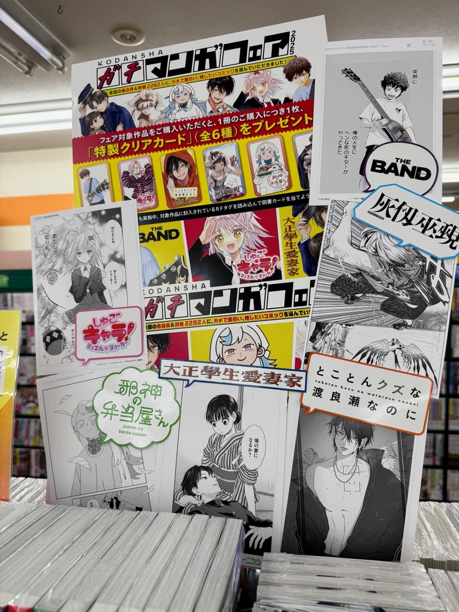 講談社「ガチマンガフェア2025」 当店では本日より展開しております。 #THEBAND #しゅごキャラジュエルジョーカー #邪神の弁当屋さん #灰仭巫覡 #とことんクズな渡良瀬なのに #大正學生愛妻家 pic.x.com/Focf4PI26L