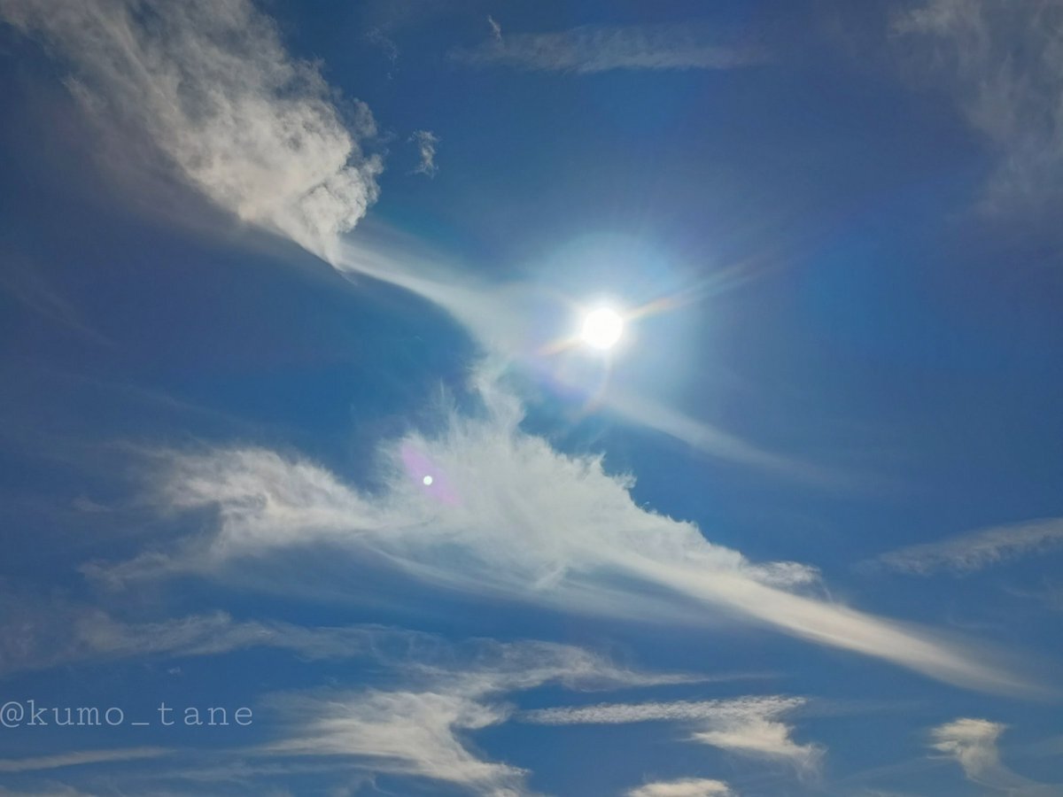 昼前、空に龍がいる!!と思って撮影。 よく見たら太陽を通る輪っかが写って指輪のようだけど… これって #幻日環 だったりして? 違っても神秘的なので良し😆 🐲のお目々みたいなのはスマホレンズの反射が良い位置に(笑) #空が好き #空がある風景 #スマホ写真 #キリトリセカイ #大気光学現象 #イマソラ pic.x.com/5PKAQ5wfMv