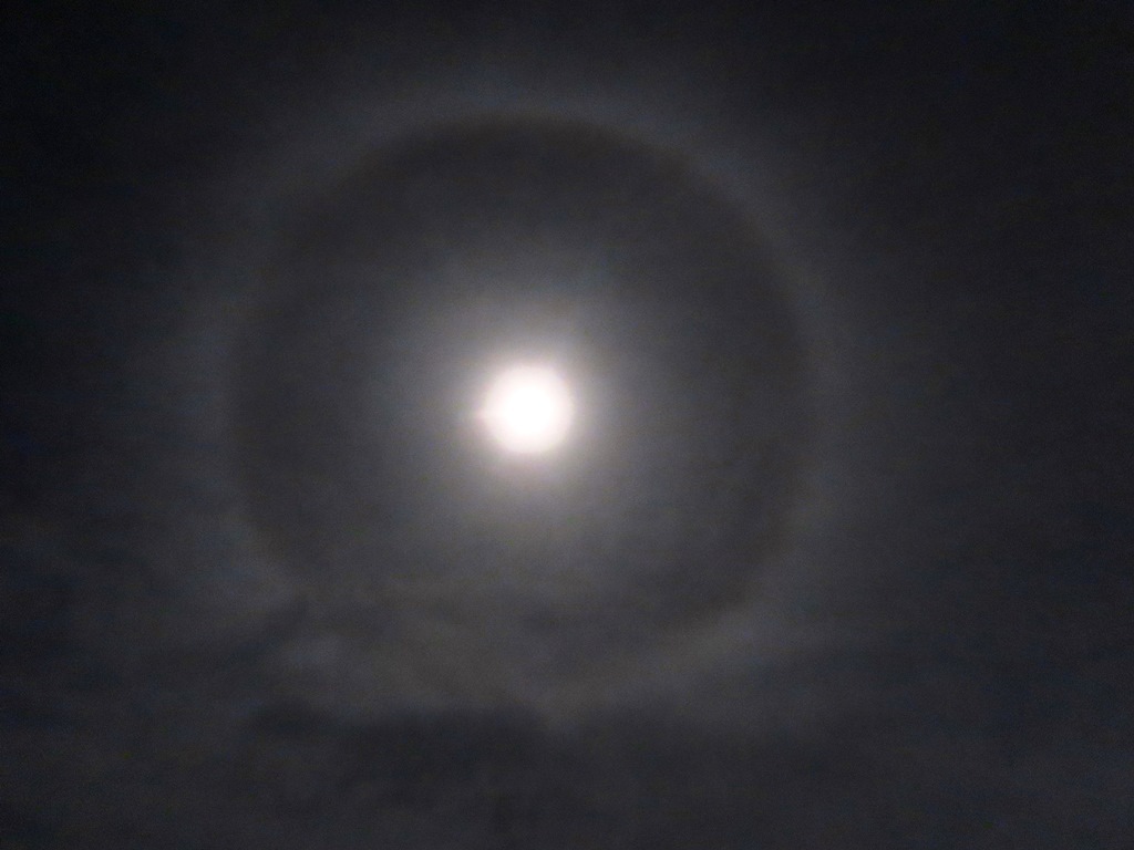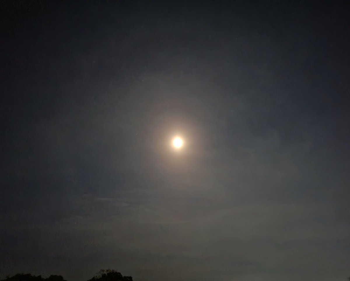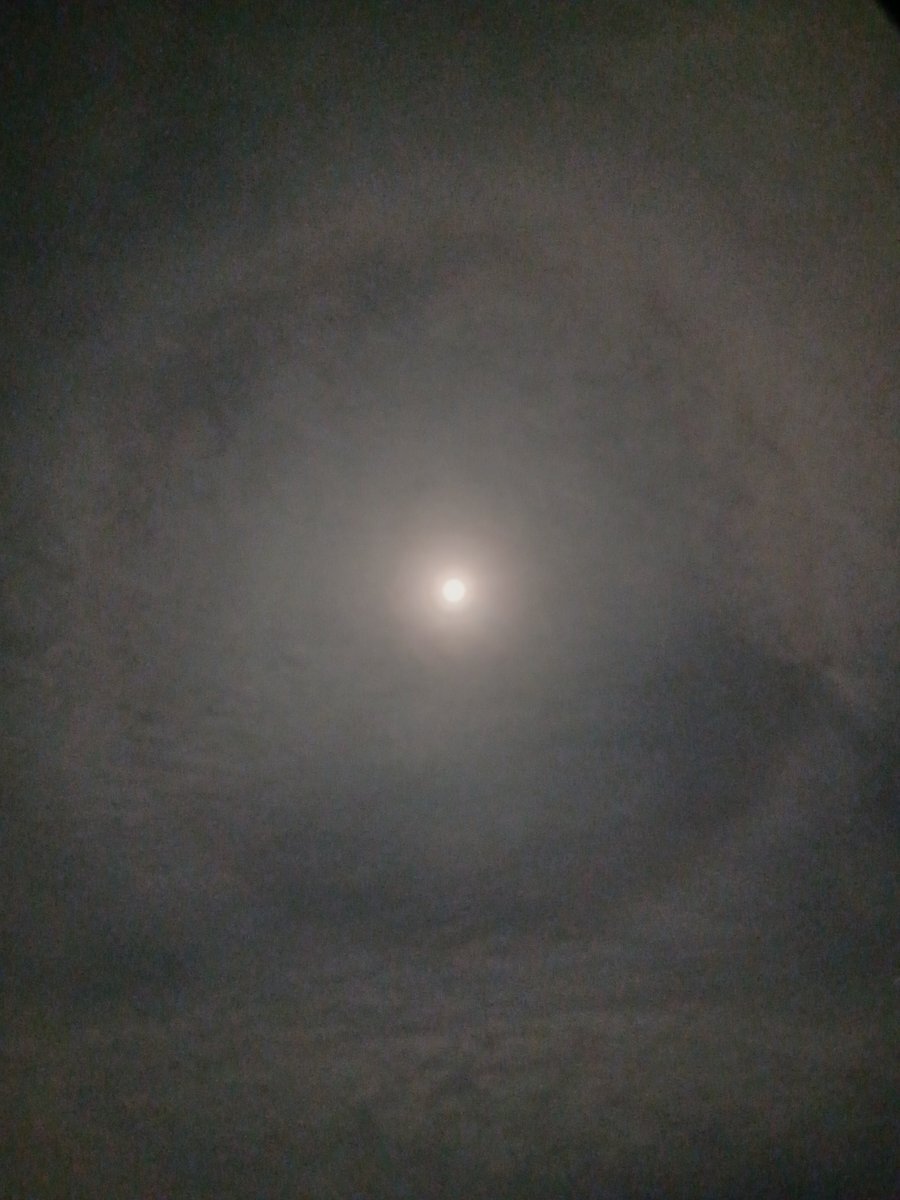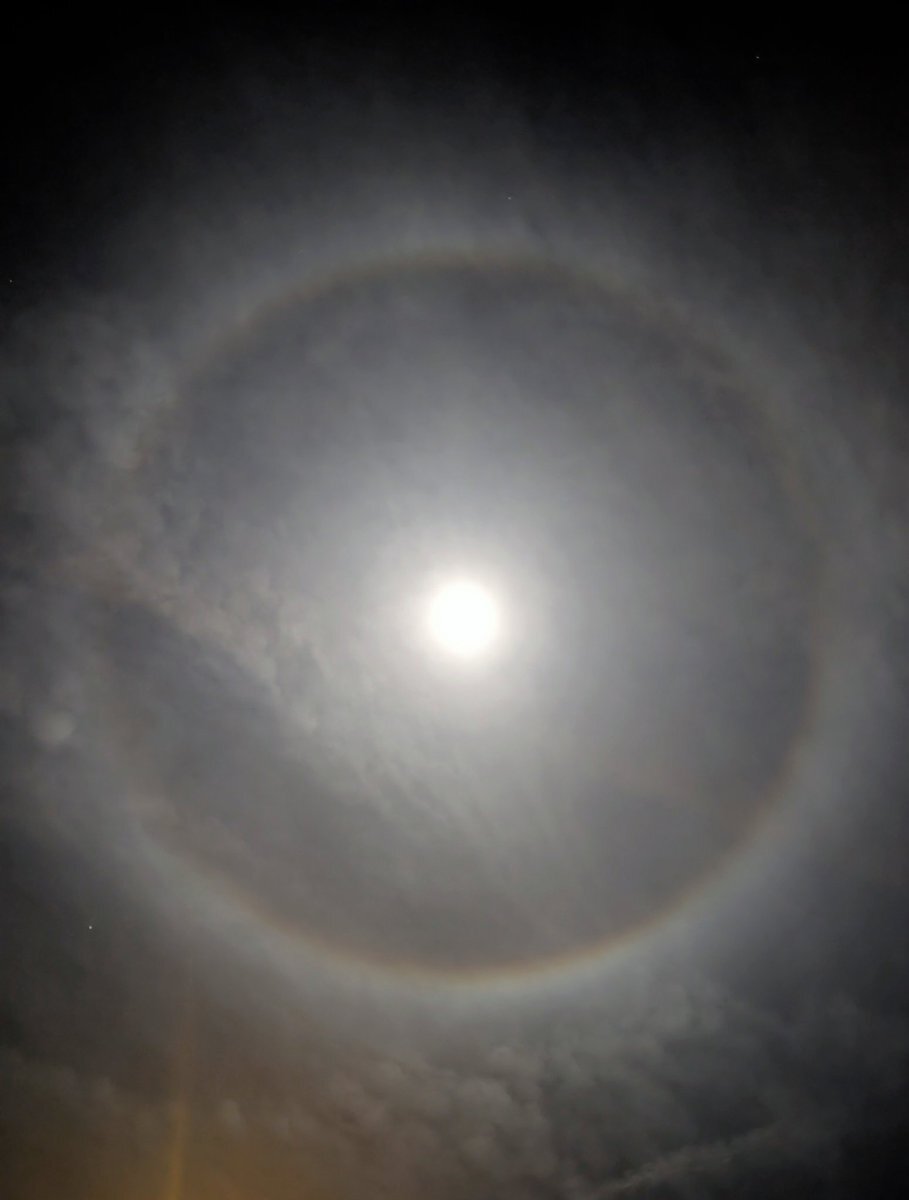 見事な #ムーンハロ ( #月暈 )! いや、今夜は“スーパームーンハロ”だね😆 #イマソラ #スーパームーン #満月 # #大気光学現象 #空好き pic.x.com/bhi5EPX6pg
