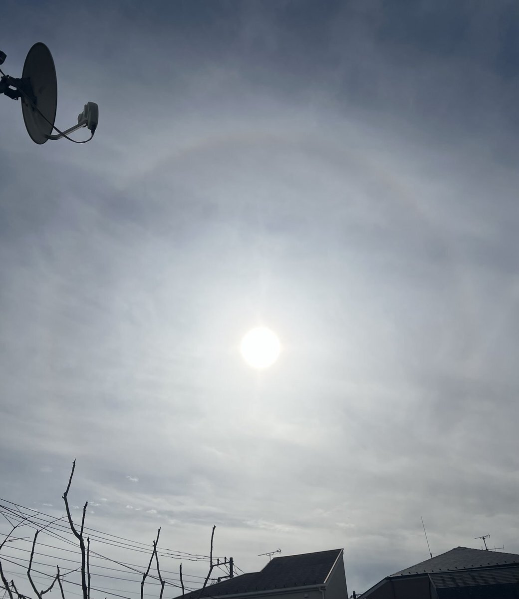 昨日↑のハロの続き (上げるの忘れてたので今頃上げる💧) 午後から濃くなりました 右側にはうっすら幻日も 環天頂アーク期待したのですが、その後雲が厚くなってハロも消滅してしまいました💧 #ハロ #日暈 #大気光学現象 #halo_jp pic.x.com/Ii4PGhtl19